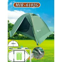 | Дополнительная информация | Палатка туристическая,с тамбуром,автоматическая,для рыбалки,кемпинговая; диаметр дуг: 8.5 мм; длина внутренней палатки: 220 см; ширина внутренней палатки: 220 см; высота внутренней палатки: 125 см; подробная комплектация: палака туристическая 3 месная 1шт. сумка для переноса , дуги, коллышки , оттяжки |