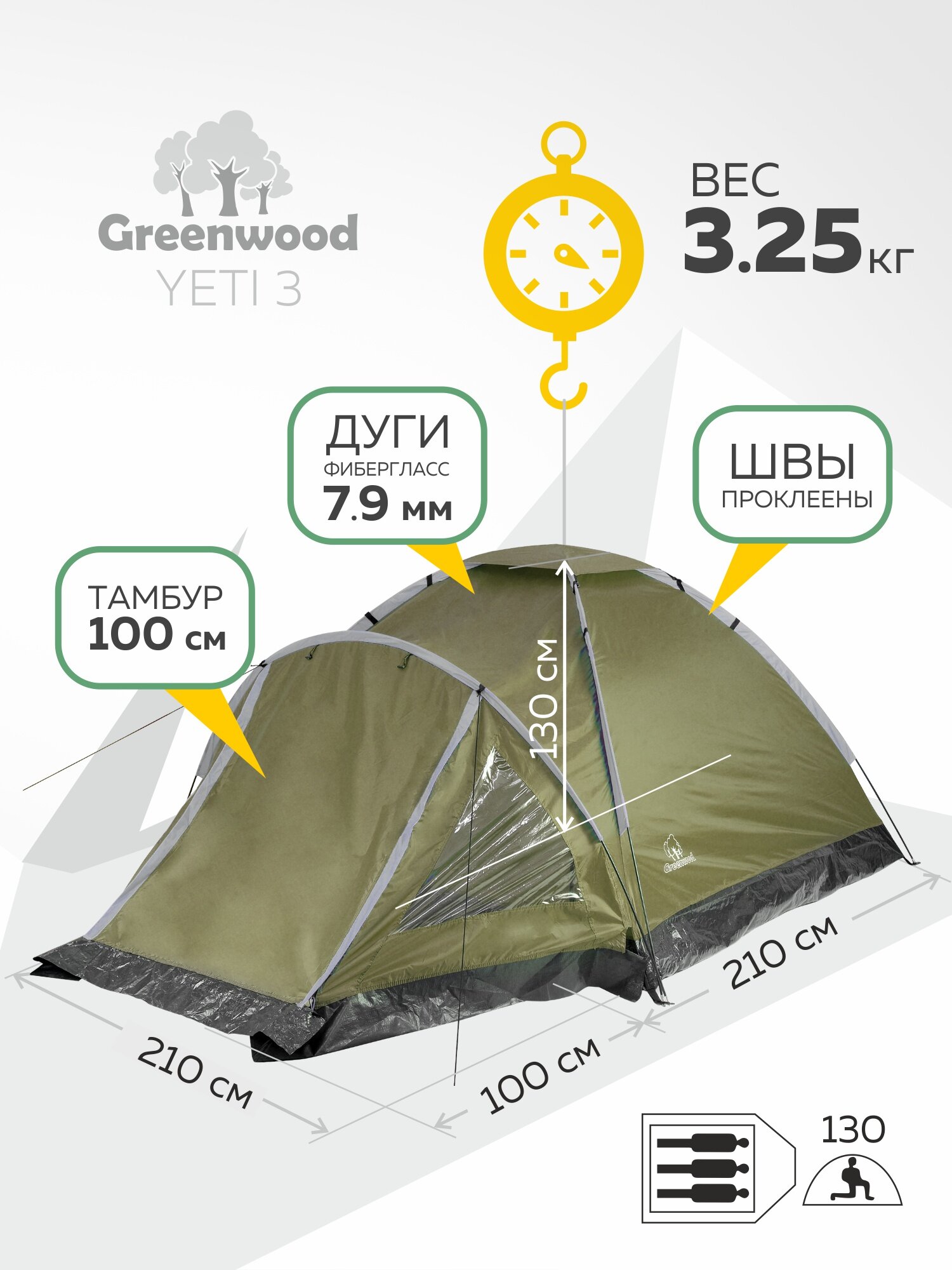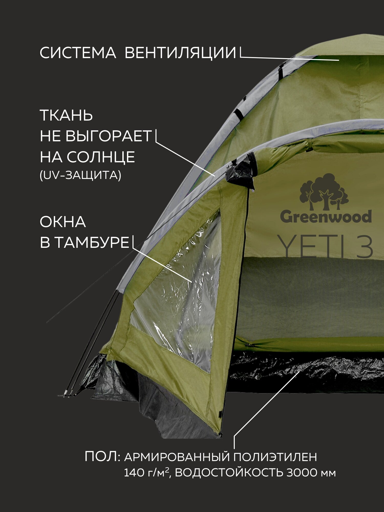Купить Палатка 3-х местная Greenwood Yeti 3 зеленый/серый с тамбуром с доставкой по всей России. Палатка 3-х местная Greenwood Yeti 3 зеленый/серый с тамбуром: сравнение цен, характеристики, фото, актуальное наличие и цены.