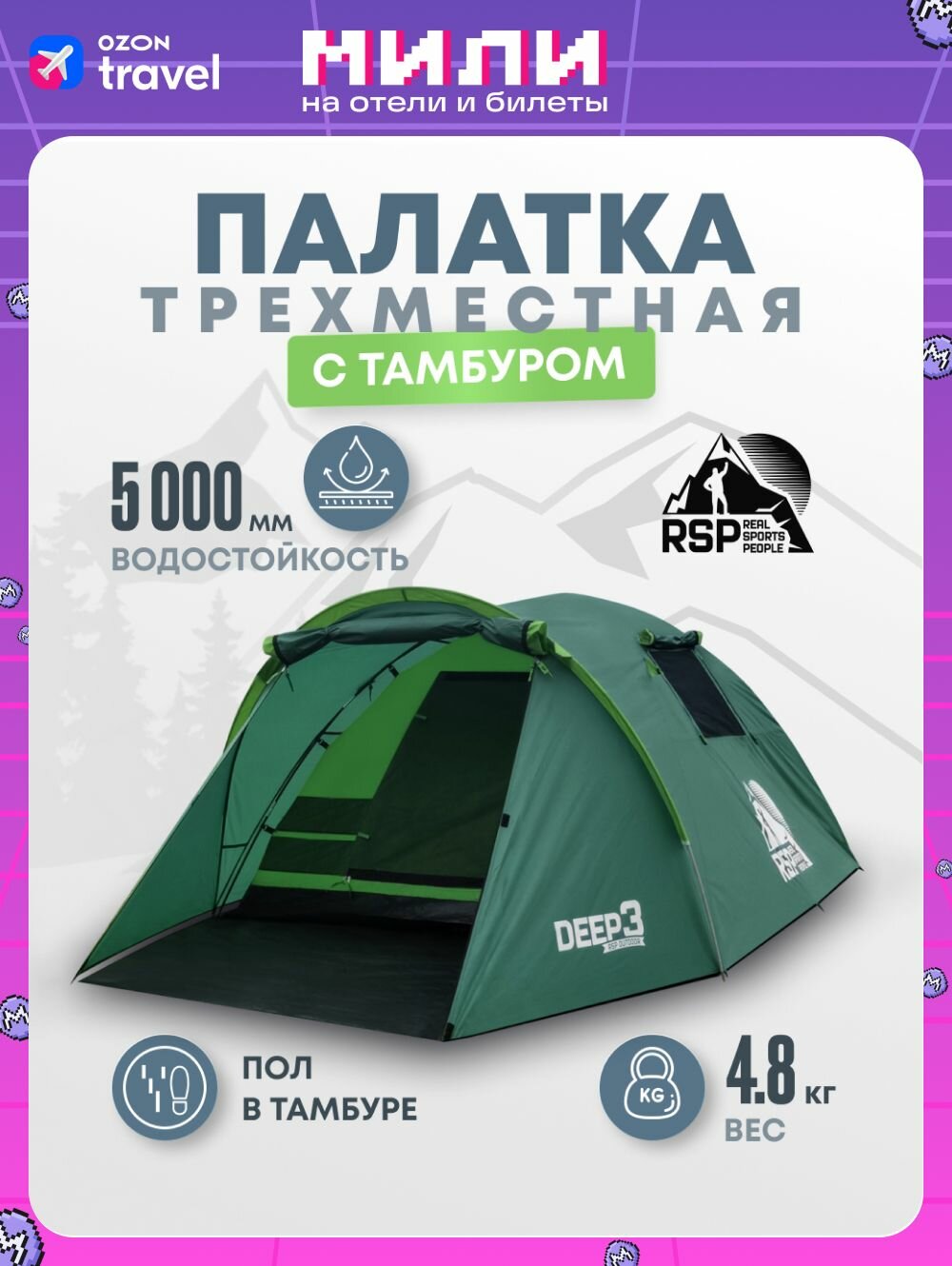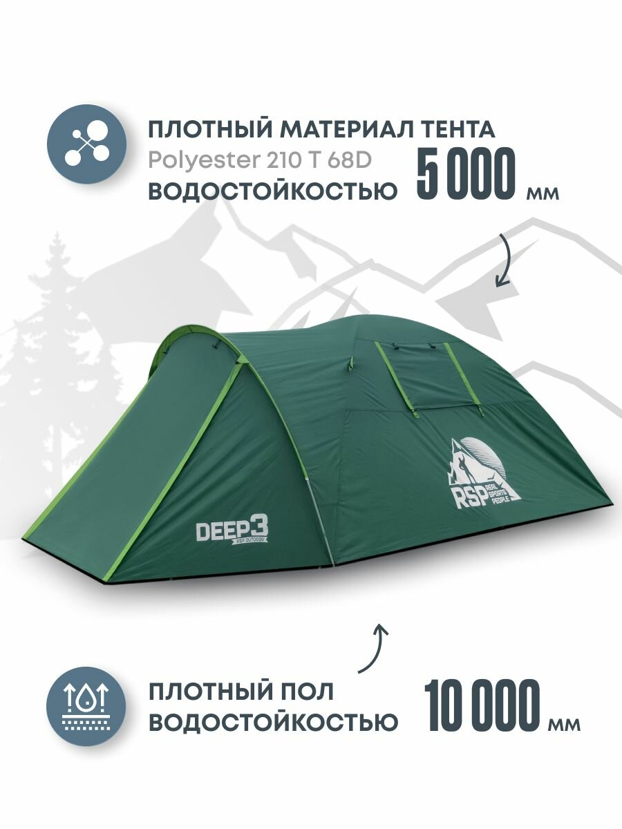 Палатка туристическая 3-х местная RSP Deep 3 (цв. зеленый): сравнение цен, характеристики, фото, актуальное наличие и цены.