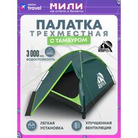 Палатка туристическая 3 местная водонепроницаемая рассчитана на размещение семьи с ребенком или троих взрослых туристов. Внутри палатки есть карманы для хранения мелочей, а также крючок для подвешивания фонаря.