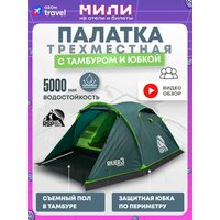 Палатка 3 местная с тамбуром имеет двухслойную конструкцию благодаря чему улучшается вентиляция, предотвращается выпадение конденсата, а также создается дополнительная защита от насекомых.