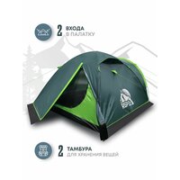 Палатка двухслойная оборудована двумя тамбурами, в которых вы сможете расположить свои вещи и обувь. Кроме того, палатка для отдыха имеет снежную «юбку», благодаря которой вы и ваши вещи будут надежно защищены от непогоды, насекомых и змей. Передний тамбур снабжен дополнительной дугой, которая поддерживает крышу тем самым увеличивает объем тамбура и делает его эксплуатацию более комфортной. Так же в тамбуре предусмотрен съемный пол, который идет в комплекте с палаткой.