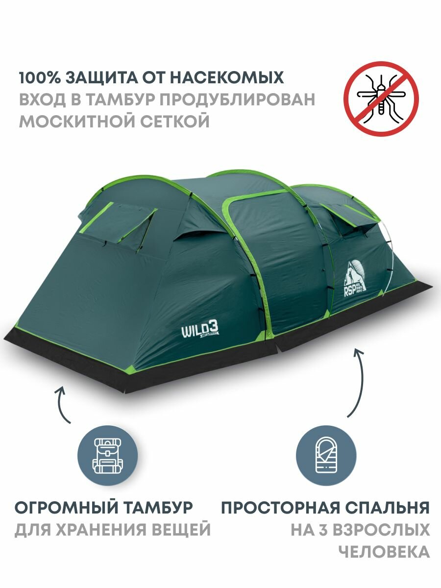 Купить Палатка 3-х местная RSP Wild 3 (цв. зеленый) с доставкой по всей России. Палатка 3-х местная RSP Wild 3 (цв. зеленый): сравнение цен, характеристики, фото, актуальное наличие и цены.