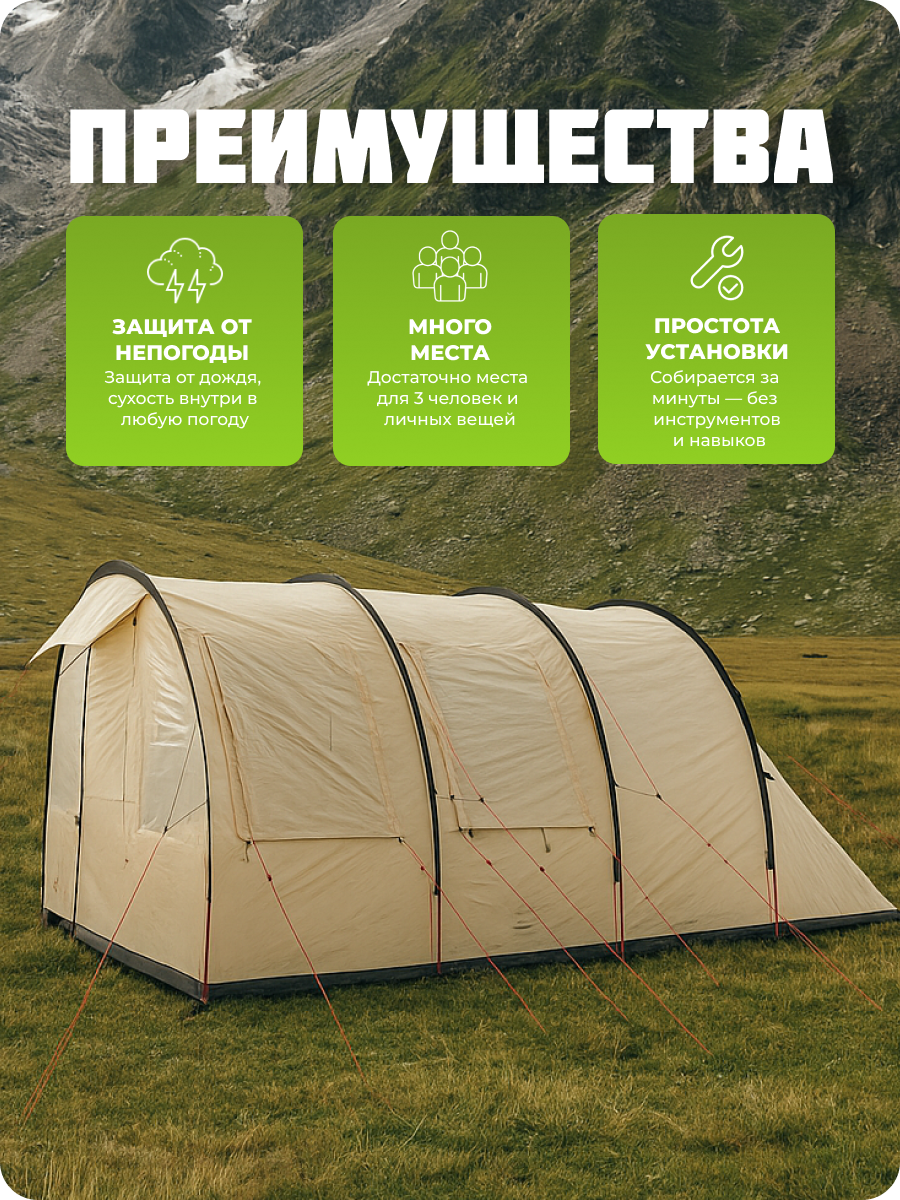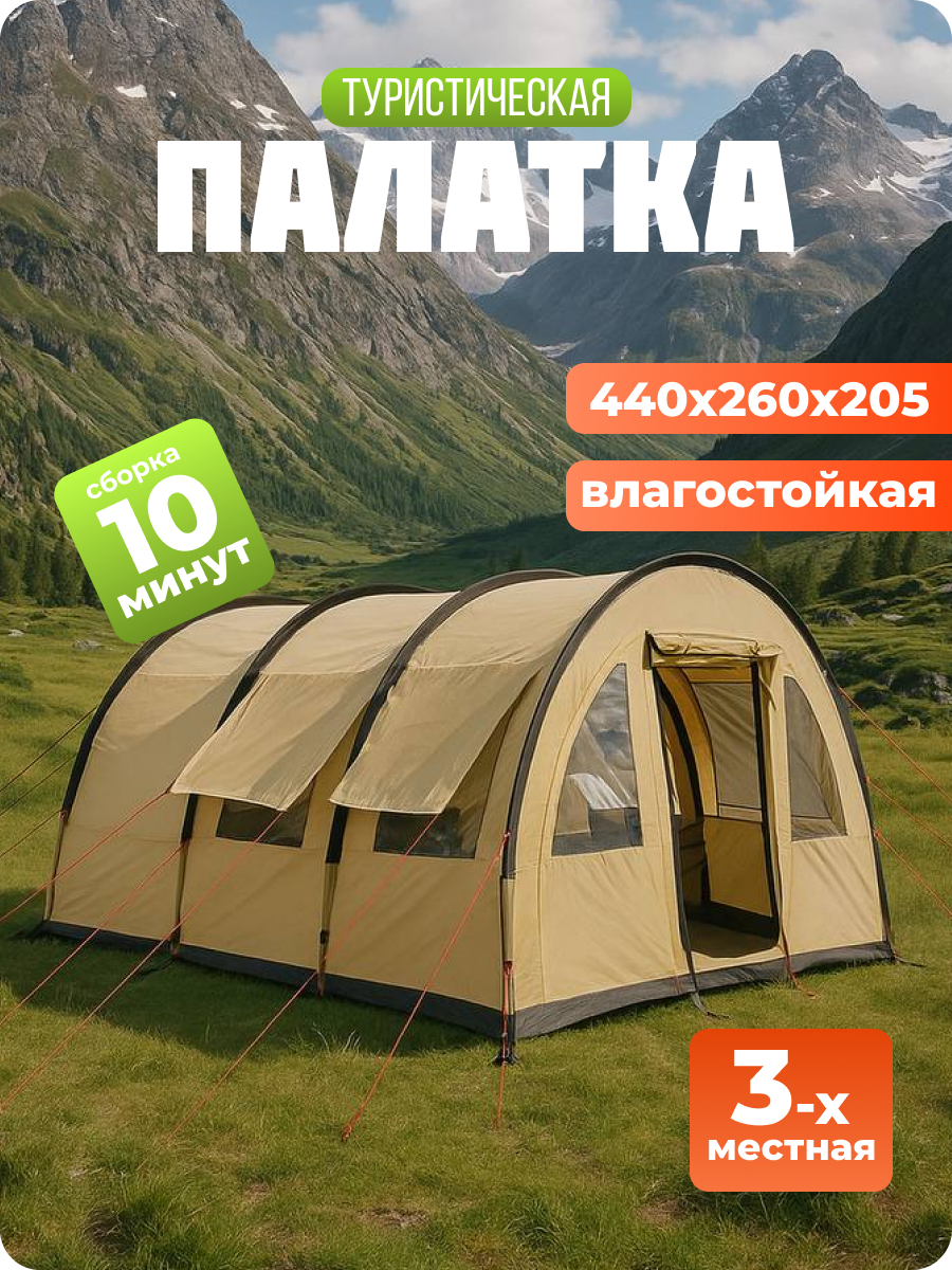Купить Палатка 3х местная с тамбуром для отдыха и туризма (Ш260*Д440*В205см) с доставкой по всей России. Палатка 3х местная с тамбуром для отдыха и туризма (Ш260*Д440*В205см): сравнение цен, характеристики, фото, актуальное наличие и цены.