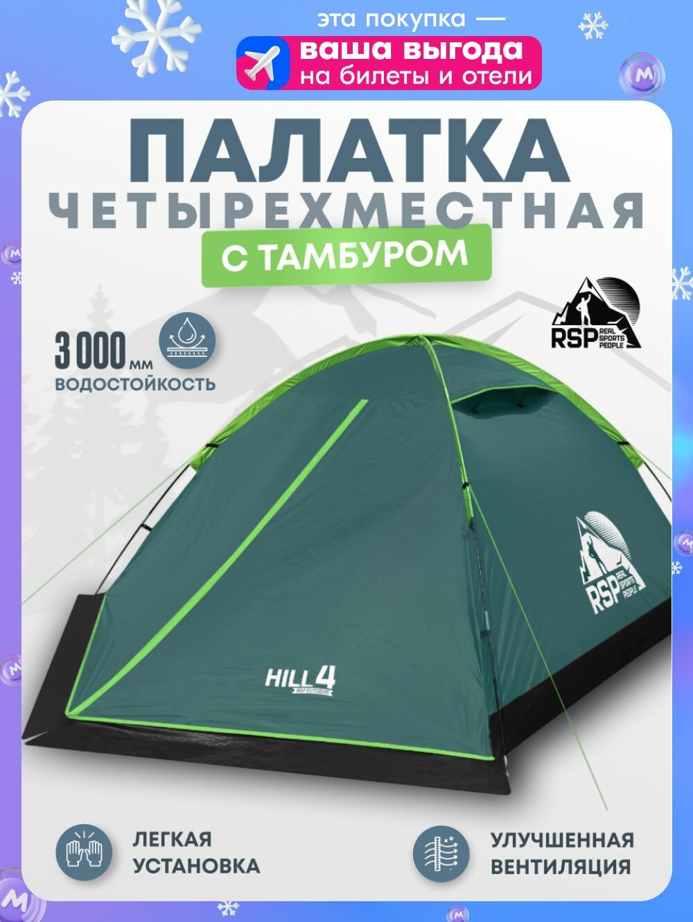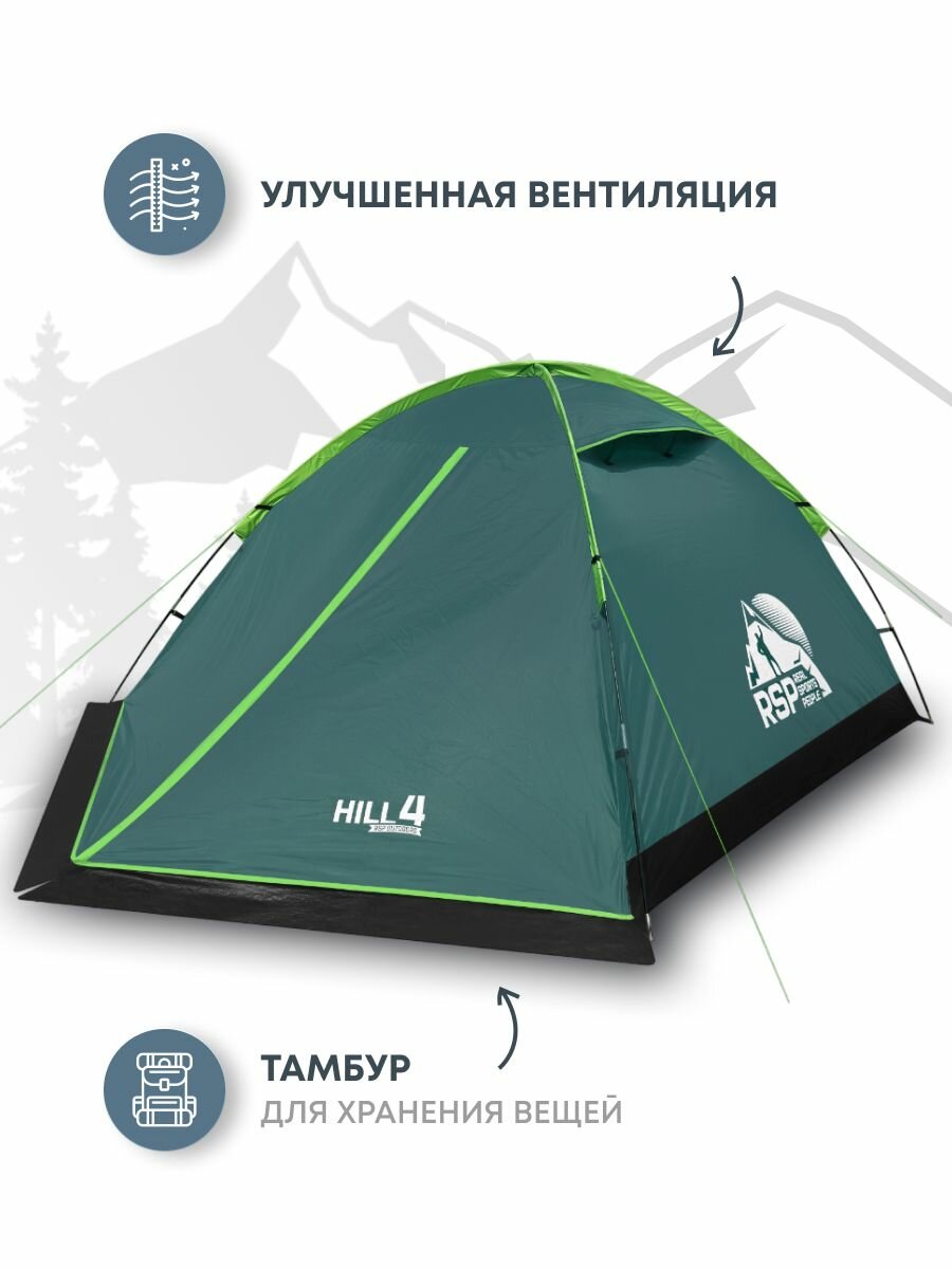 Палатка 4-х местная RSP Hill 4: сравнение цен, характеристики, фото, актуальное наличие и цены.
