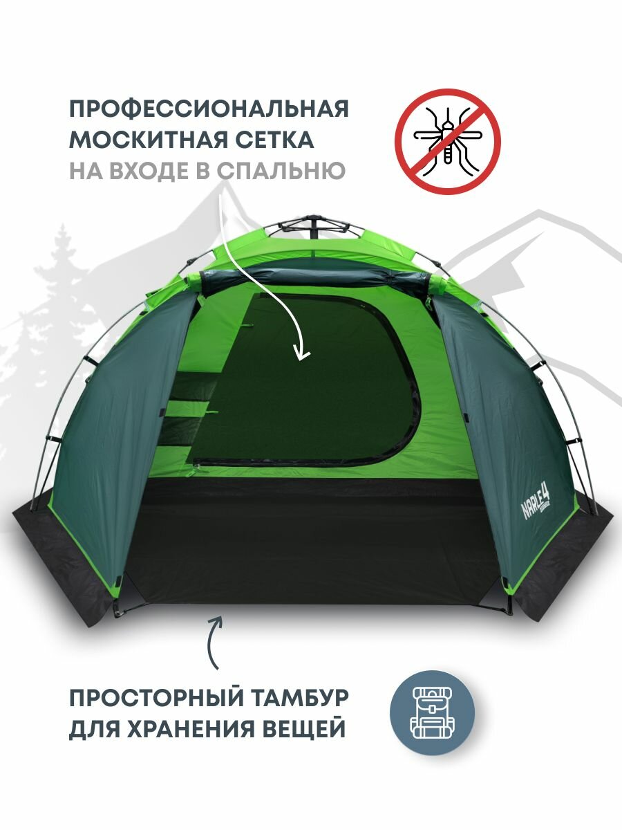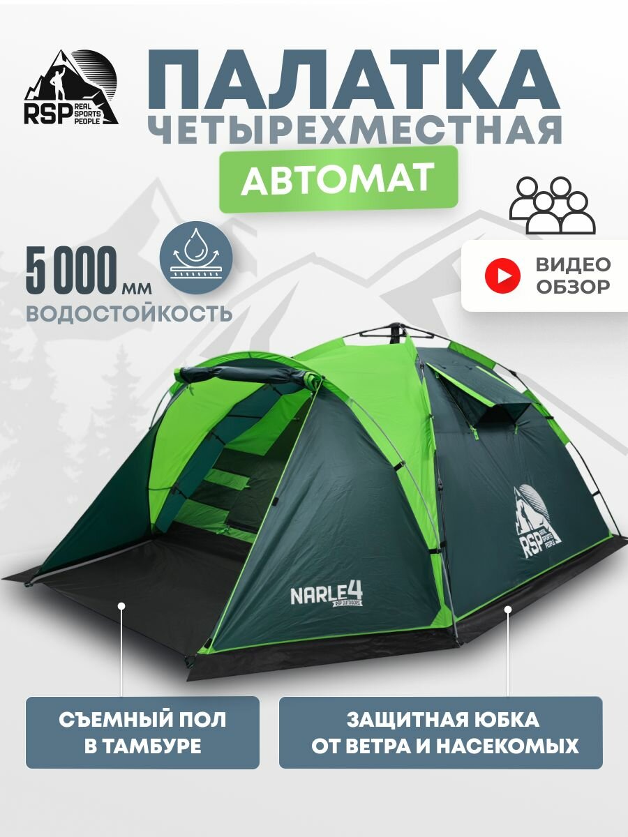 Купить Палатка 4-х местная RSP Narle 4 с автоматическим каркасом (цв. зеленый) с доставкой по всей России. Палатка 4-х местная RSP Narle 4 с автоматическим каркасом (цв. зеленый): сравнение цен, характеристики, фото, актуальное наличие и цены.