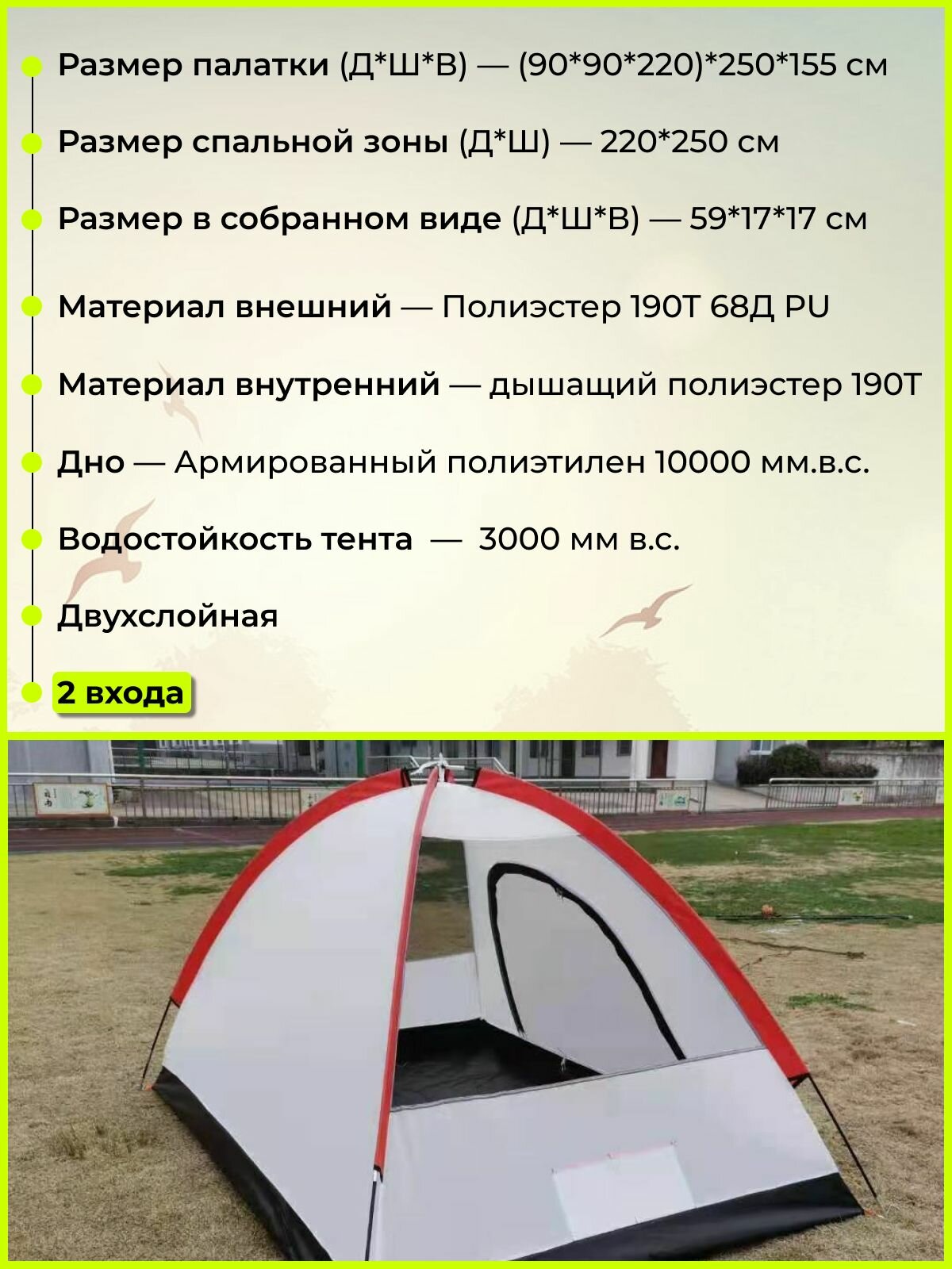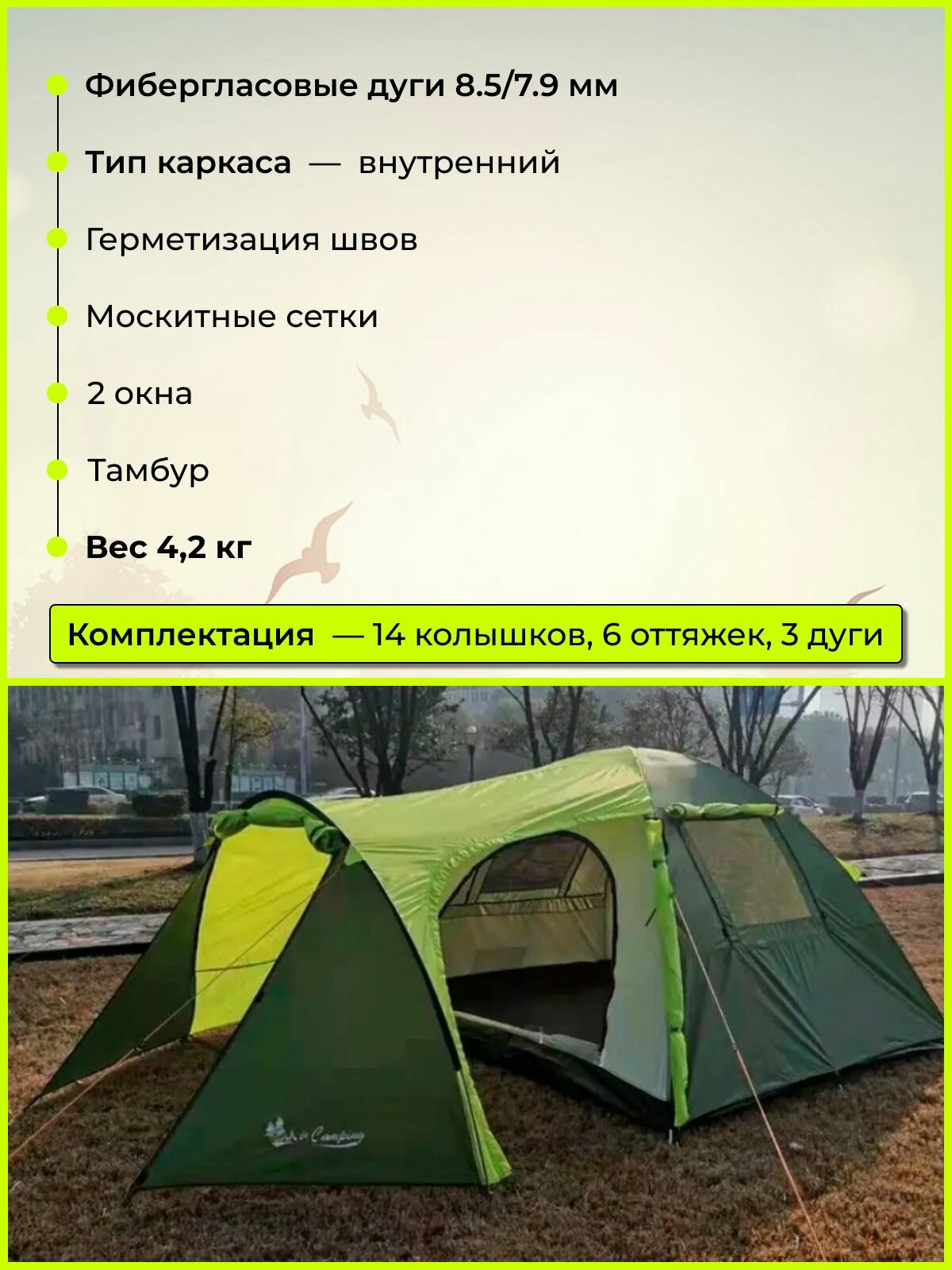 Палатка 4-х местная с тамбуром, 2 входа, палатка двухслойная туристическая: сравнение цен, характеристики, фото, актуальное наличие и цены.