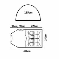 Туристическая палатка 1036 - отличный выбор для больших компаний. Изготовлена из прочных материалов высокого качества, обеспечивающих надежность и долговечность. Каркас в форме полубочки с дополнительными оттяжками для увеличения устойчивости к ветру. Дуги из фибергласа диаметром 8.5/7.9 мм обеспечивают надежную конструкцию. Размеры палатки 400*250*155 см, в сложенном виде 59*17*17 см, вес 4.2 кг. Внешний тент из Polytaffeta 190T 68D PU 3000 мм обеспечивает защиту от дождя средней интенсивности. Внутренняя палатка выполнена из дышащего полиэстера 190T, а дно из PE высокой плотности не пропускает влагу. Палатка имеет две секции: спальную и тамбур, два выхода и два окна с москитными сетками. Двухслойная конструкция предотвращает образование конденсата. В комплект входят: внутренняя палатка, внешний тент, дуги, колышки, оттяжки и сумка-чехол для переноски. Также в комплекте 3 дуги разного диаметра, 18 колышков и 6 оттяжек, что делает эту палатку удобной и функциональной для активного отдыха на свежем воздухе.