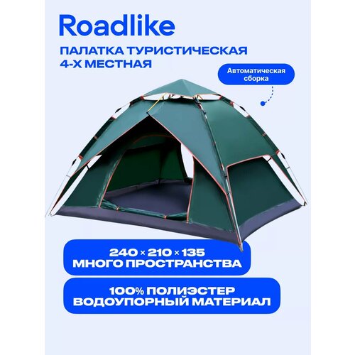 Палатка 3-4 местная RoadLike PopUp - снабжена автоматическим каркасом, который собирается буквально за минуту и выполнен из прочного стекловолокна. Ткань тента - полиэстер 190T PU2000 мм вод. ст. (водонепроницаемое полиуретановое покрытие, выдерживает дождь средней силы до 12-14 часов). Вход в палатку и окошко защищены москитной сеткой. Под потолком специальная петелька, где можно разместить фонарь. Палатка RoadLike рассчитана для комфортного размещения 3-4 человек. Характеристики: Ткань купола: 100% полиэстер 190T PU2000 Ткань пола: Оксфорд 210D Каркас: 6,9mm стекловолокно Конструкция: двухслойная Количество мест: 4 Размер палатки: 240х210х135 см Размер в сложенном виде: 75х17х17 см Вес: 3,2кг Инструкция по установке: - выньте палатку из сумки и разложите её, крестовиной вверх - поднимите крестовину на уровень головы - давите на нижнюю часть крестовины, до упора - зафиксируйте колышками дно палатки Теперь ты можешь отдыхать там, где захочешь.