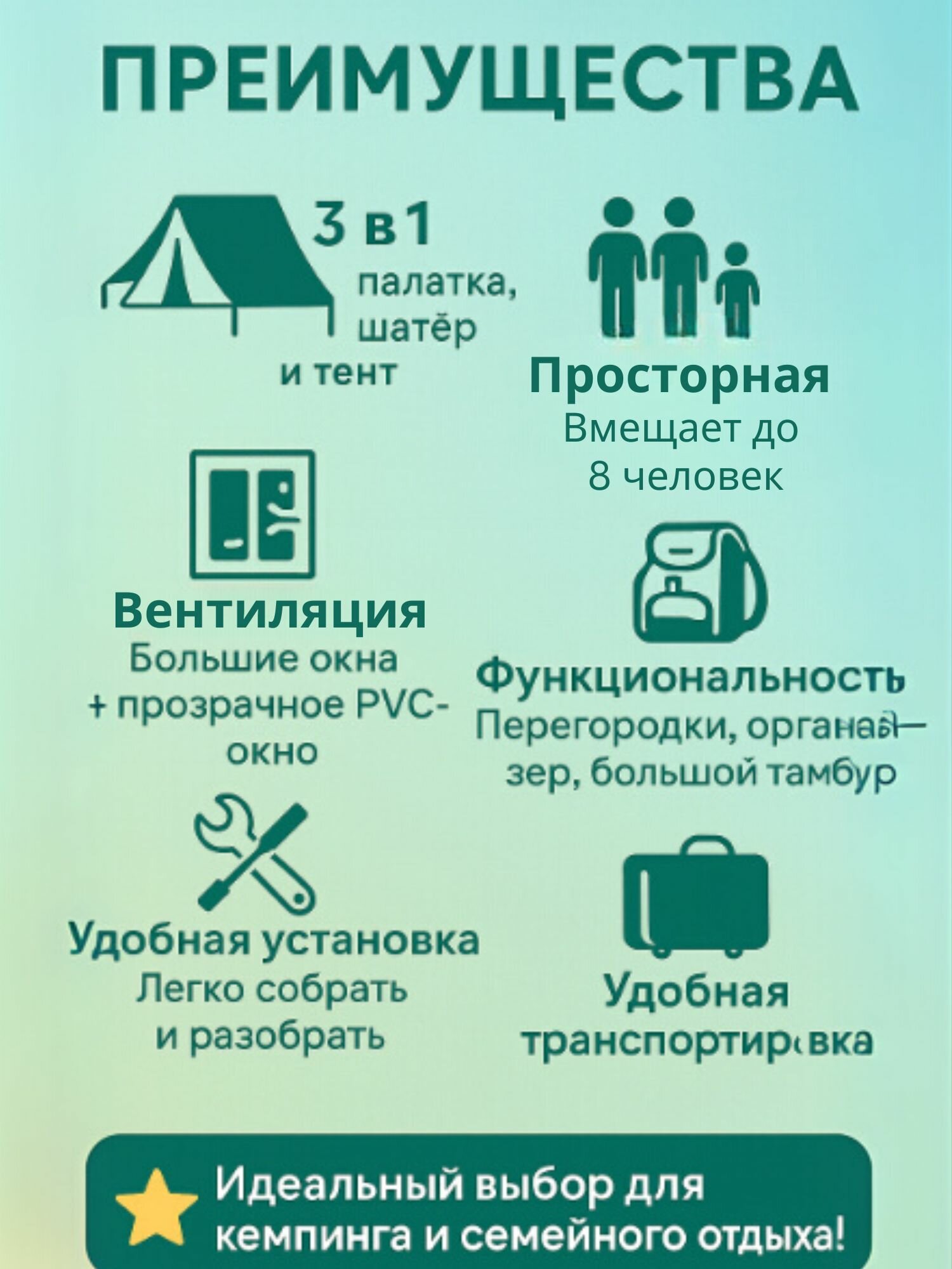 Купить Палатка 8 местная для кемпинга с доставкой по всей России. Палатка 8 местная для кемпинга: сравнение цен, характеристики, фото, актуальное наличие и цены.
