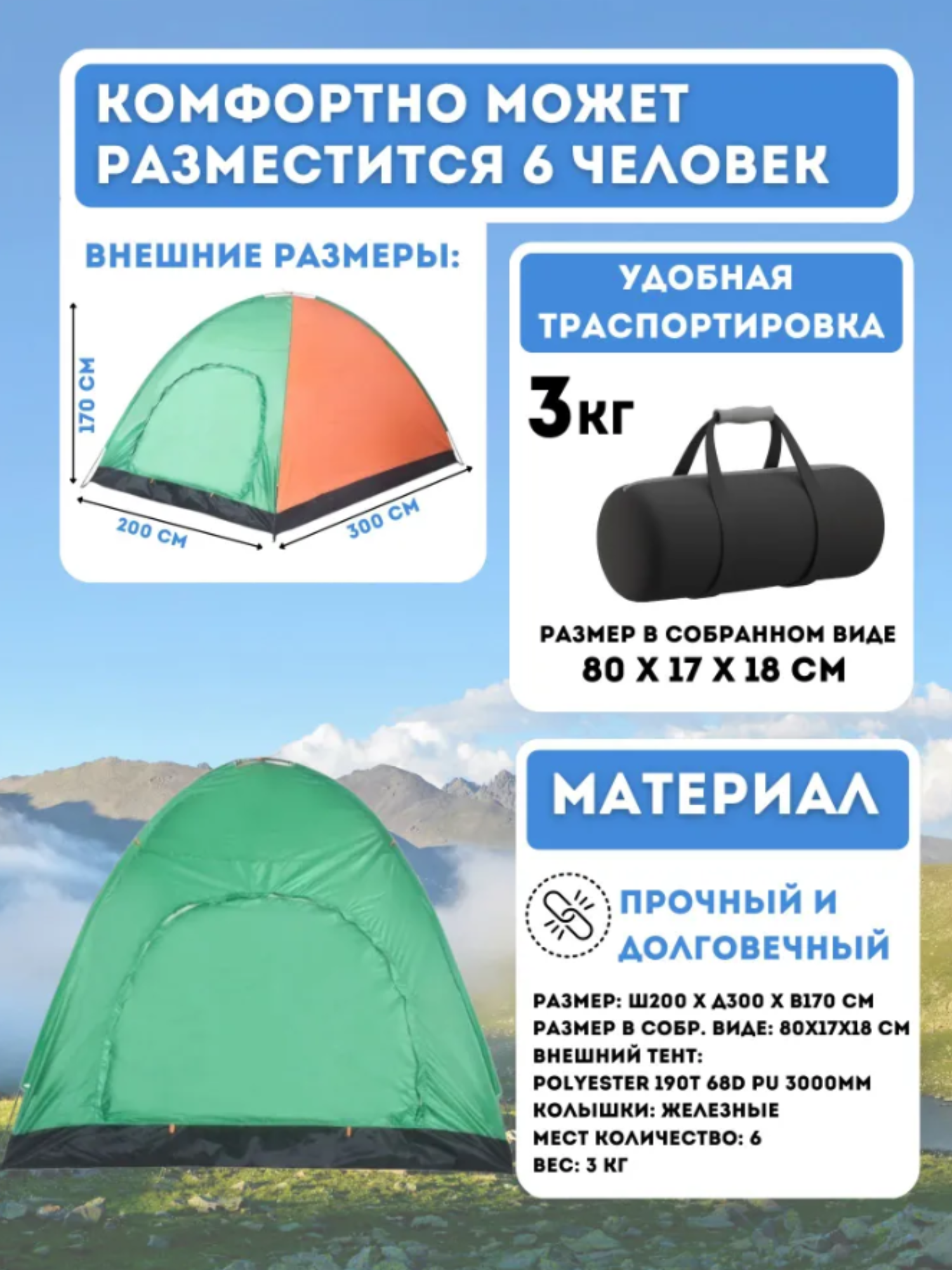 Купить Палатка автоматическая 6 местная TF-001C с доставкой по всей России. Палатка автоматическая 6 местная TF-001C: сравнение цен, характеристики, фото, актуальное наличие и цены.