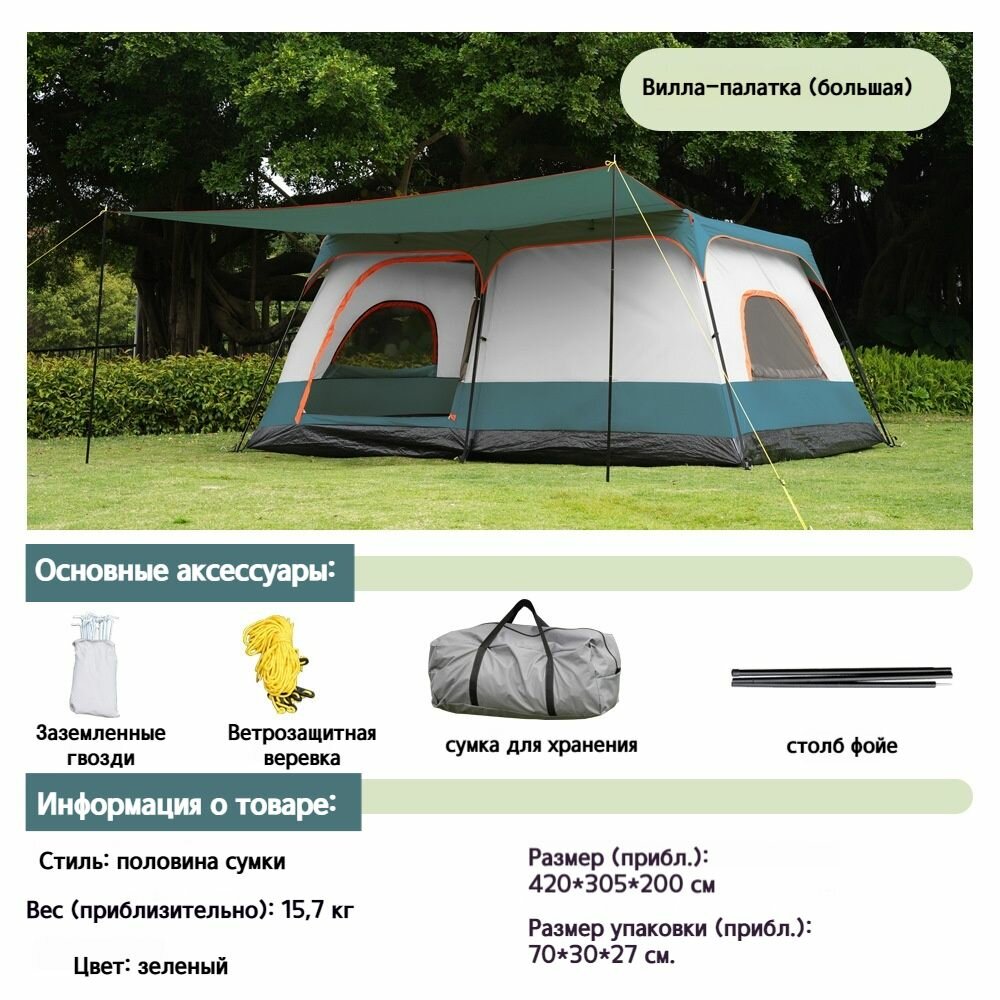 Палатка CamFity 15 420x305x200 темно-зеленый: сравнение цен, характеристики, фото, актуальное наличие и цены.