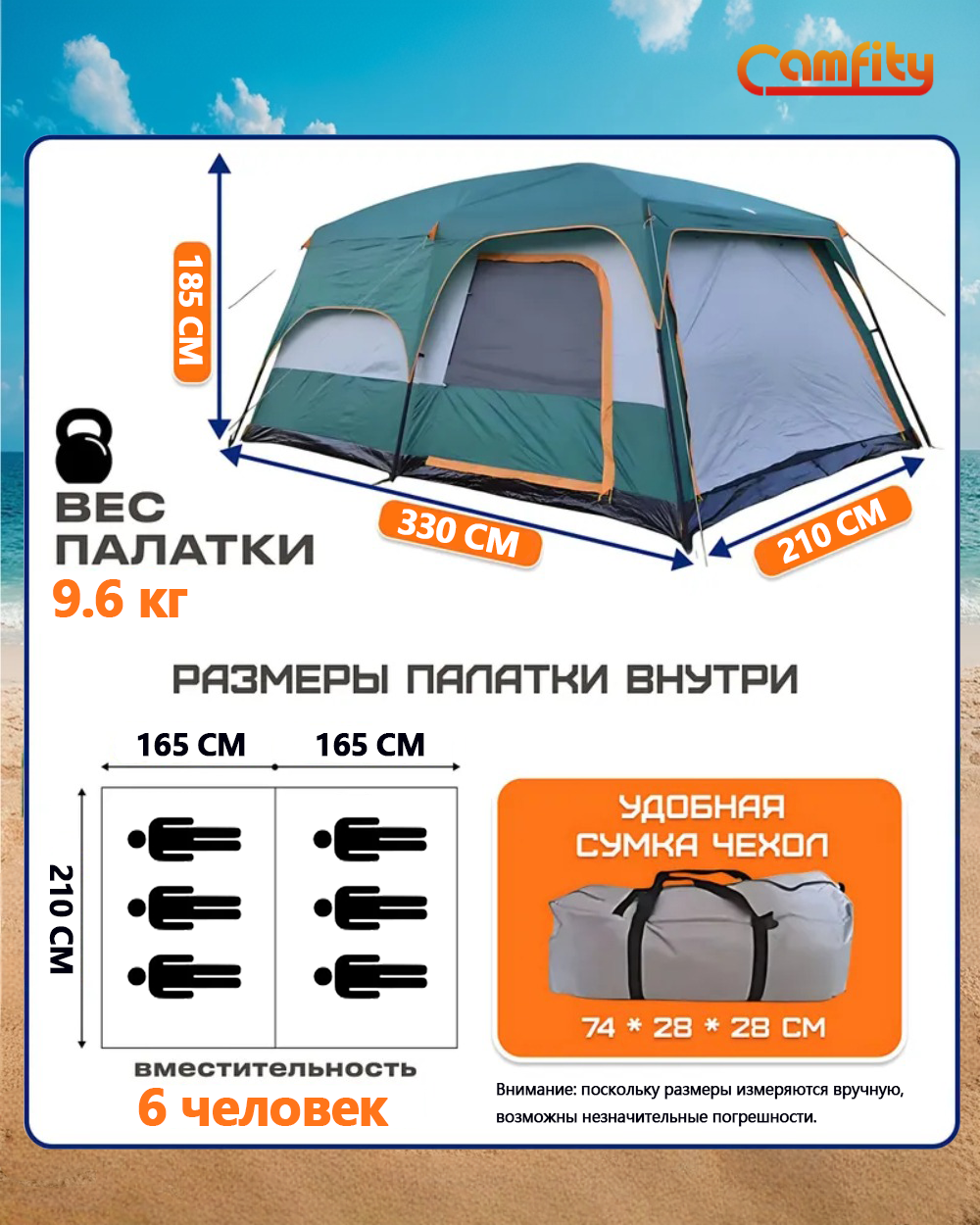 Купить Палатка CamFity 330*210*185 см с доставкой по всей России. Палатка CamFity 330*210*185 см: сравнение цен, характеристики, фото, актуальное наличие и цены.