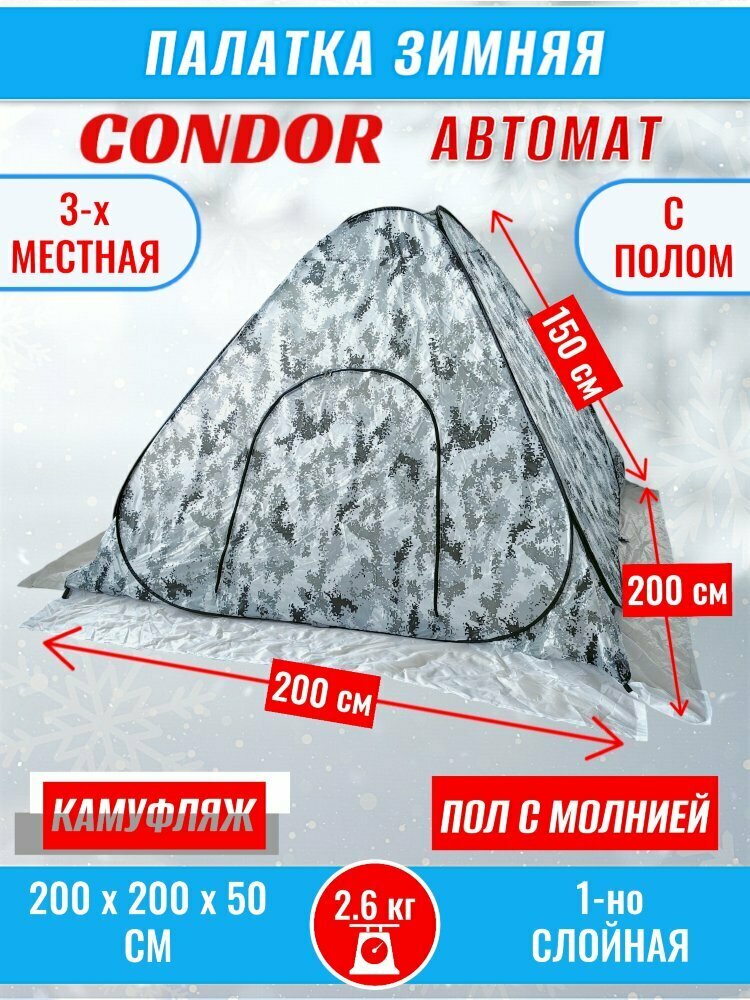 Палатка CONDOR автомат зимняя 2.0 Х 2.0 Х 1.5 м, КМФ белый пол расстёгивается: сравнение цен, характеристики, фото, актуальное наличие и цены.