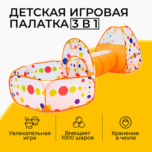 Купить Палатка детская игровая 3 в 1 с тоннелем и бассейном, оранжевая с доставкой по всей России. Палатка детская игровая 3 в 1 с тоннелем и бассейном, оранжевая: сравнение цен, характеристики, фото, актуальное наличие и цены.