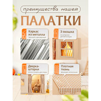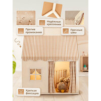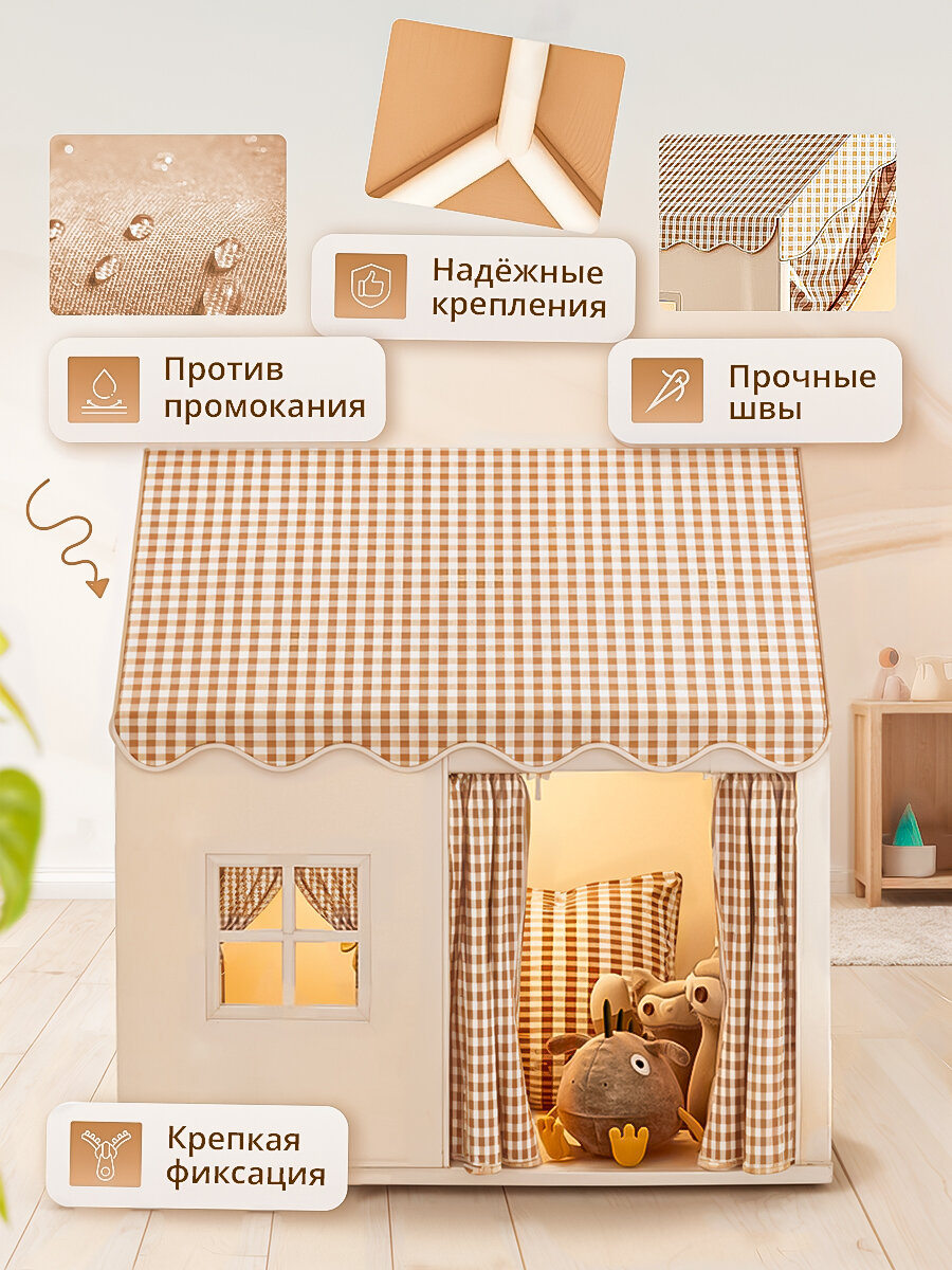 Окрашенный в нежные бежевые и серые оттенки, этот шатер притягивает взгляд и вызывает интерес игры на улицу. Цветовая палитра спокойна и уютна, что делает палатку идеальным детским миром для игр и отдыха. Материалы высшего качества, включая легкий металл не пластик и прочный хлопок, мягкий текстиль, гарантируют безопасность и долговечность игрового комплекса. Каркас состоит из: 22 соединяющих муфт, 10 углоков, 37 трубок.