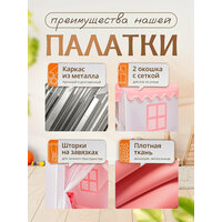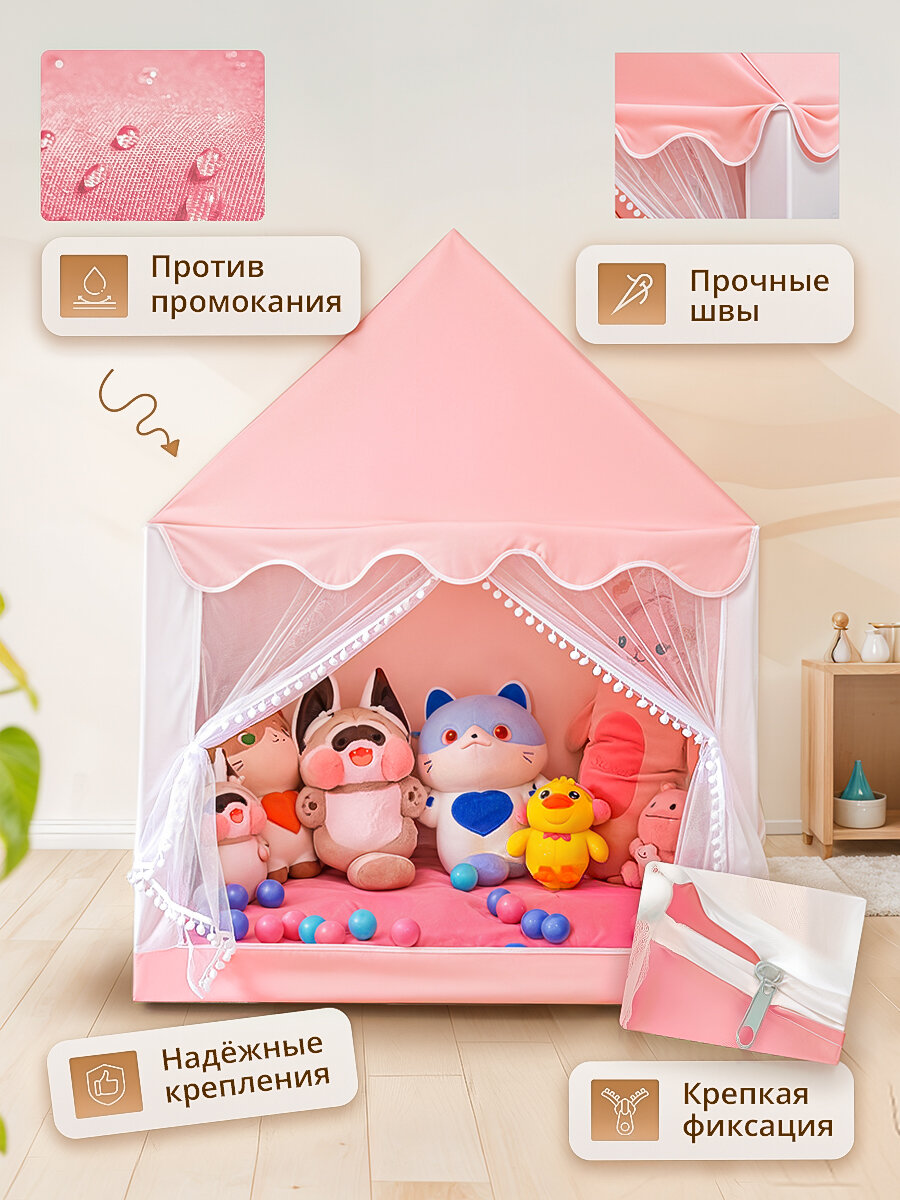 Вместительный домик-палатка в ключает в свой набор чехол - сумка. Создайте любимую зону для игр вашей дочери, внучки, крестницы или племянныцы и даже для малышей и мальчиков. Подарите собственное пространство для развития воображения. Подзодит для разных возрастов девочек 2+, 3+ года и до 7, 8 лет, для девочек 9 лет, старше года. Это прикольные и веселые подарки для незабываемого детства. В палатке может уместиться до 4 или 5 детей
