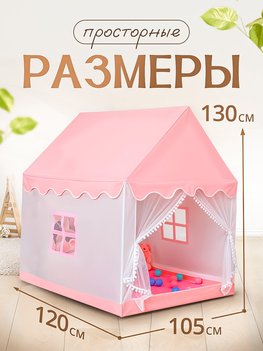 Игрушка для девочек и ворота в волшебный замок для вашей принцессы! Большая детская палатка станет идеальным подарком и незаменимым элементом в игрушечной коллекции. Развлекательный комплекс в виде домика – удивительное место, где мечты оживают, а фантазии получают простор для воплощения. Размеры палатки: 130*120*105см