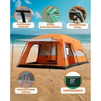 Палатка для рыбалки GO FISHING 4-местная с 2-комнатами туристическая с тамбуром, не боится дождя, армированный пол, с москитной сеткой