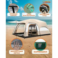 Палатка для рыбалки GO FISHING 4-местная с 2-комнатами туристическая с тамбуром, не боится дождя, армированный пол, с москитной сеткой