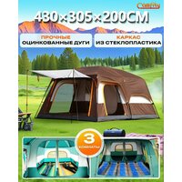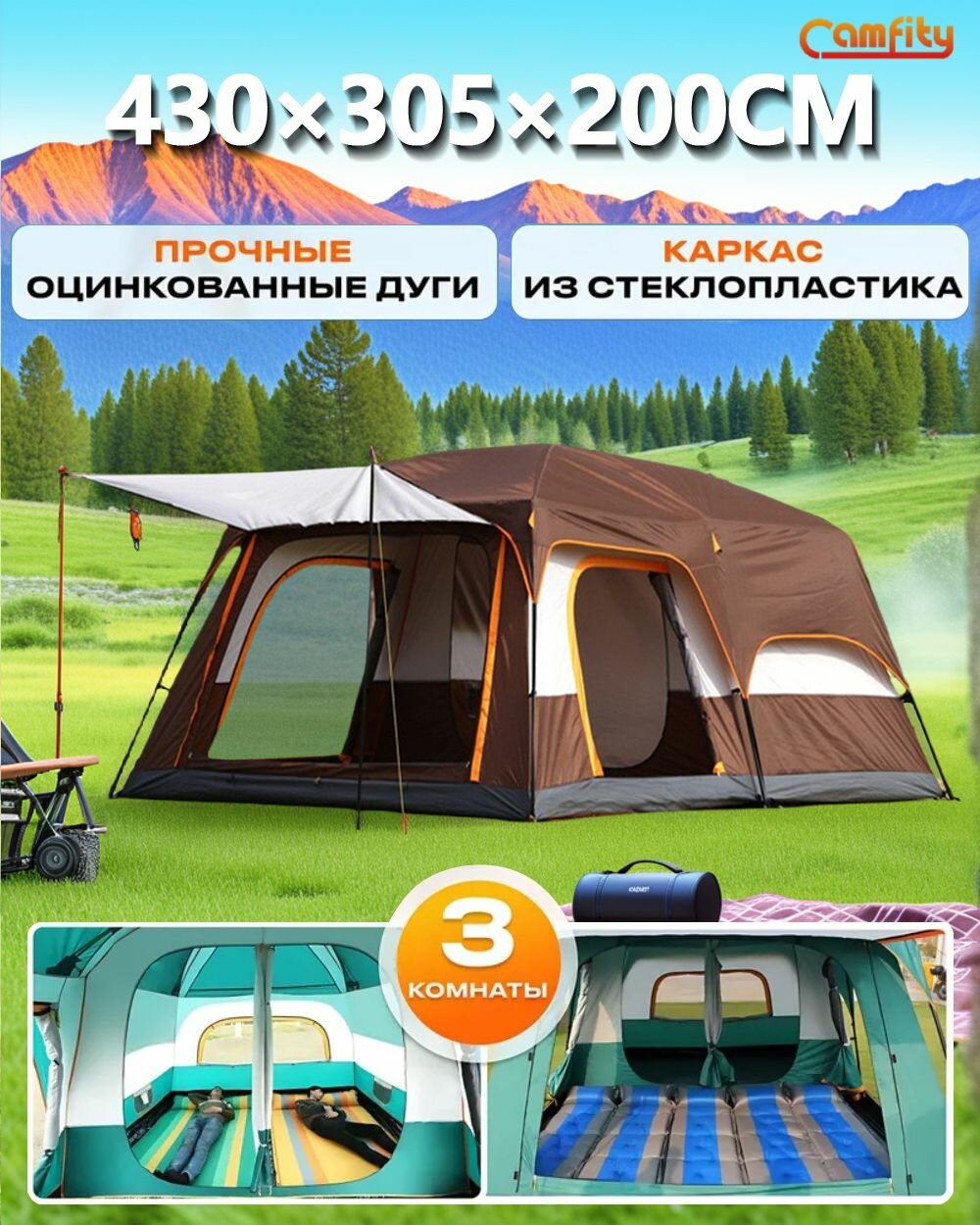 Палатка для рыбалки GO FISHING 4-местная с 2-комнатами туристическая с тамбуром, не боится дождя, армированный пол, с москитной сеткой