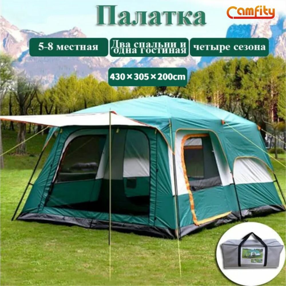 Купить Палатка для рыбалки GO FISHING 4-местная с 2-комнатами туристическая с тамбуром, не боится дождя, армированный пол, с москитной сеткой с доставкой по всей России.