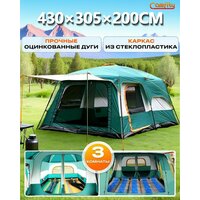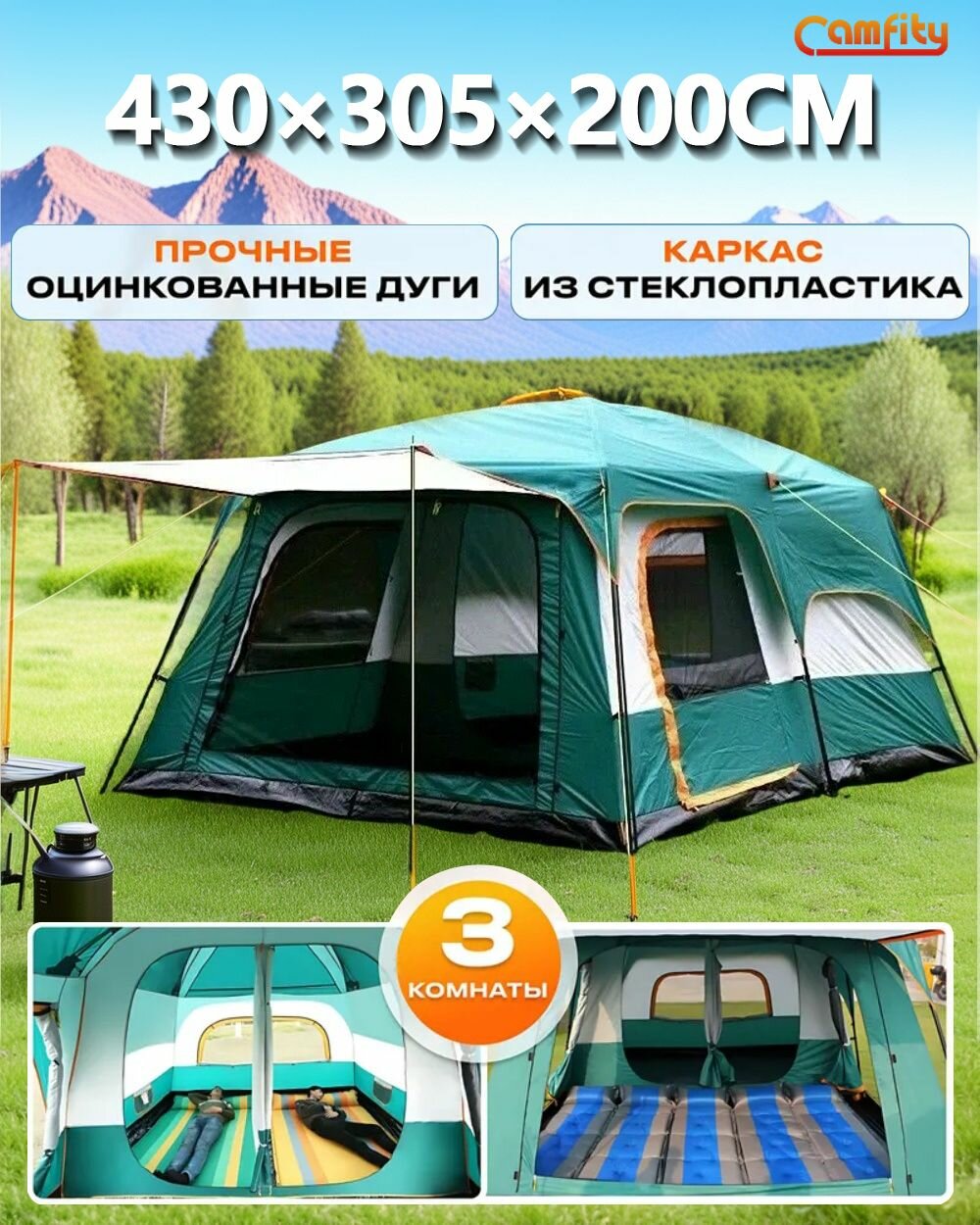 Палатка для рыбалки GO FISHING 4-местная с 2-комнатами туристическая с тамбуром, не боится дождя, армированный пол, с москитной сеткой