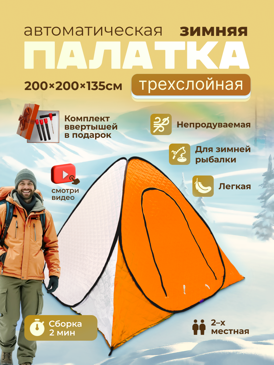Палатка для рыбалки, утепленная, трехслойная, 2 места, быстросборный каркас, синяя: сравнение цен, характеристики, фото, актуальное наличие и цены.