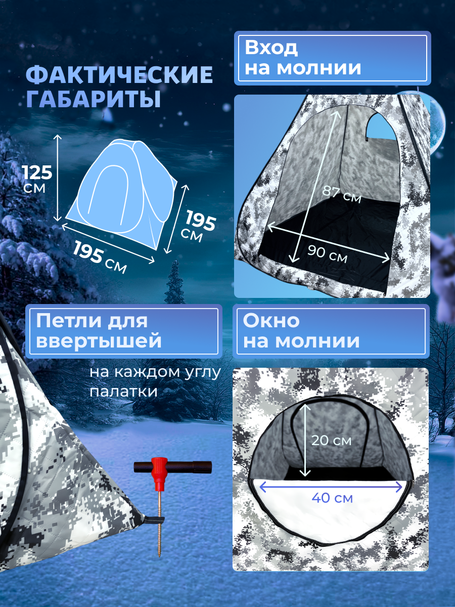 Палатка, для зимней рыбалки, с отверстием для лунок, внутренний каркас, 3,3 кг: сравнение цен, характеристики, фото, актуальное наличие и цены.