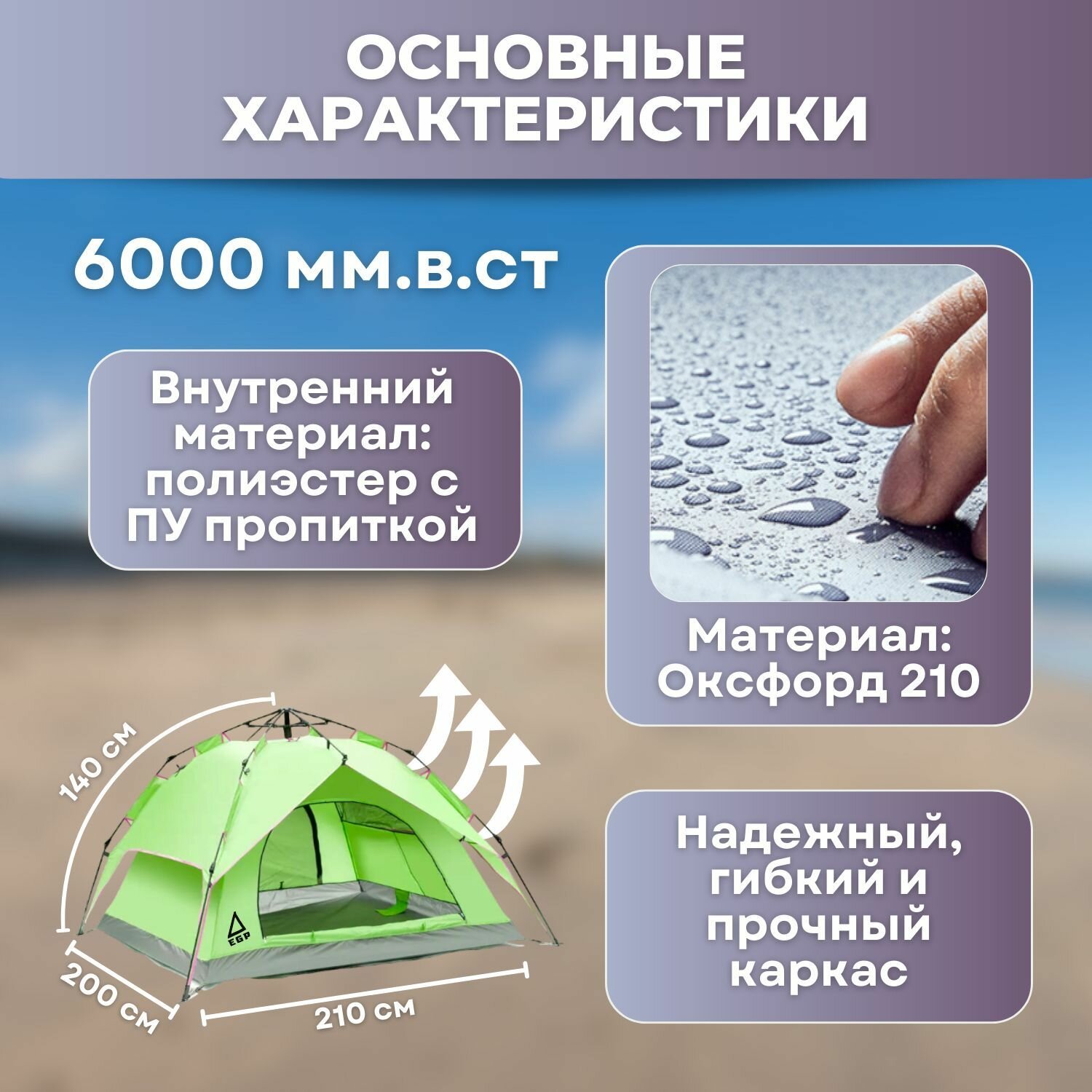 Купить Палатка EGP PROever LightGreenFox с автоматической установкой 4х местная двухслойная с доставкой по всей России.