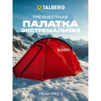 Палатка Talberg Peak pro 3 red для экспедиций и походов любой сложности. Тент: Polyester RipStop 210Т/75D 8000 мм Дно: Polyester 195T/80D 10 000 мм Внутренняя палатка: Дышащий Polyester Дуги: ALU 7001 8,5 мм Четырехдуговой внешний каркас; Вес: 4.5 кг Количество мест: 3 Внешний тент устойчив к UV излучению и имеет противоискровую обработку; Ветрозащитная юбка; Два вентиляционных клапана; Многоточечная система оттяжек со светоотражающими элементами; Все швы проклеены; Крючок для фонарика; Количество входов и тамбуров: 2 Размеры: 205х400х120 см Размер внутренней палатки: 220х160х110 см Размеры в упаковке: 59х16х16 см Ремонтный набор в комплекте. Максимально надежная и ветроустойчивая, четырех-дуговая туристическая палатка с внешним каркасом, большим внутренним объемом и двумя входами Talberg Peak Pro 3 Red, отличный вариант для серьезных туристических маршрутов и экспедиций. Данная модель прошла неоднократные испытания в суровых горных условиях и получила множество положительных отзывов. Палатка имеет ярко-красный цвет тента, что немаловажно, при использовании в условиях высокогорья. Простая и быстрая установка, Вы можете установить палатку в течение 3-5 минут. Рассчитанная на трех человек палатка, имеет идеальное соотношение объем-вес и удобную сумку для переноски. Благодаря использованию четырех-дуговой конструкции внешнего каркаса, имеющего семь точек пересечений модель получила высокую ветроустойчивость, возможность выдерживать большие снеговые нагрузки, вместительные тамбуры и большой внутренний объем. Один из входов имеет два варианта открытия и фиксации в открытом положении. В тамбурах можно разместить большое количество снаряжения, а так же приготовить пищу на горелке, во время непогоды. Возможность использования внешнего каркаса повышает ветроустойчивость и позволяет быстро установить тент и укрыться от непогоды, без установки внутренней палатки. Внешний тент надежно защищает от сильного ветра и атмосферных осадков. Двухслойная конструкция палатки отлично испаряет конденсат и способствует комфортному проживанию в походных условиях. Модель рекомендуется для использования круглый год, включая зимний период. Описание: • Быстрая установка. • Тент сигнально-красного цвета. • Повышенная ветро- и снего-устойчивость конструкции. • Тент палатки - Polyester 210T/75D с многослойным полиуритановым покрытием, водостойкостью 8000 мм. c технологией плетения Ripstop (усиление прочностных характеристик тента, без существенного увеличения веса) • Тент имеет защитное покрытие от ультрафиолета и противоискровую обработку внешней поверхности. • 100% гарантия водонепроницаемости, благодаря проклейке всех швов термоусадочной лентой. • Узлы тента палатки, испытывающие более высокие нагрузки, имеют тканевые усиления. • Дно палатки выполнено в виде короба, из прочного и износостойкого Polyester 195T/80D с многослойным полиуритановым покрытием, водостойкостью 10000 мм. • Внутренняя палатка из "дышащего" Polyester обеспечивает отличную вентиляцию и испарение конденсата. • Дуги выполнены из алюминиевого сплава Alu-7001 (с добавлением цинка и магния, для улучшения прочностных характеристик сплава), диаметром 8,5 мм. • Два верхних вентиляционных клапана. • Многоточечная система оттяжек со светоотражающими элементами, позволяющая выдерживать большие ветровые нагрузки. • Москитные сетки, дублирующие основные двери на вх