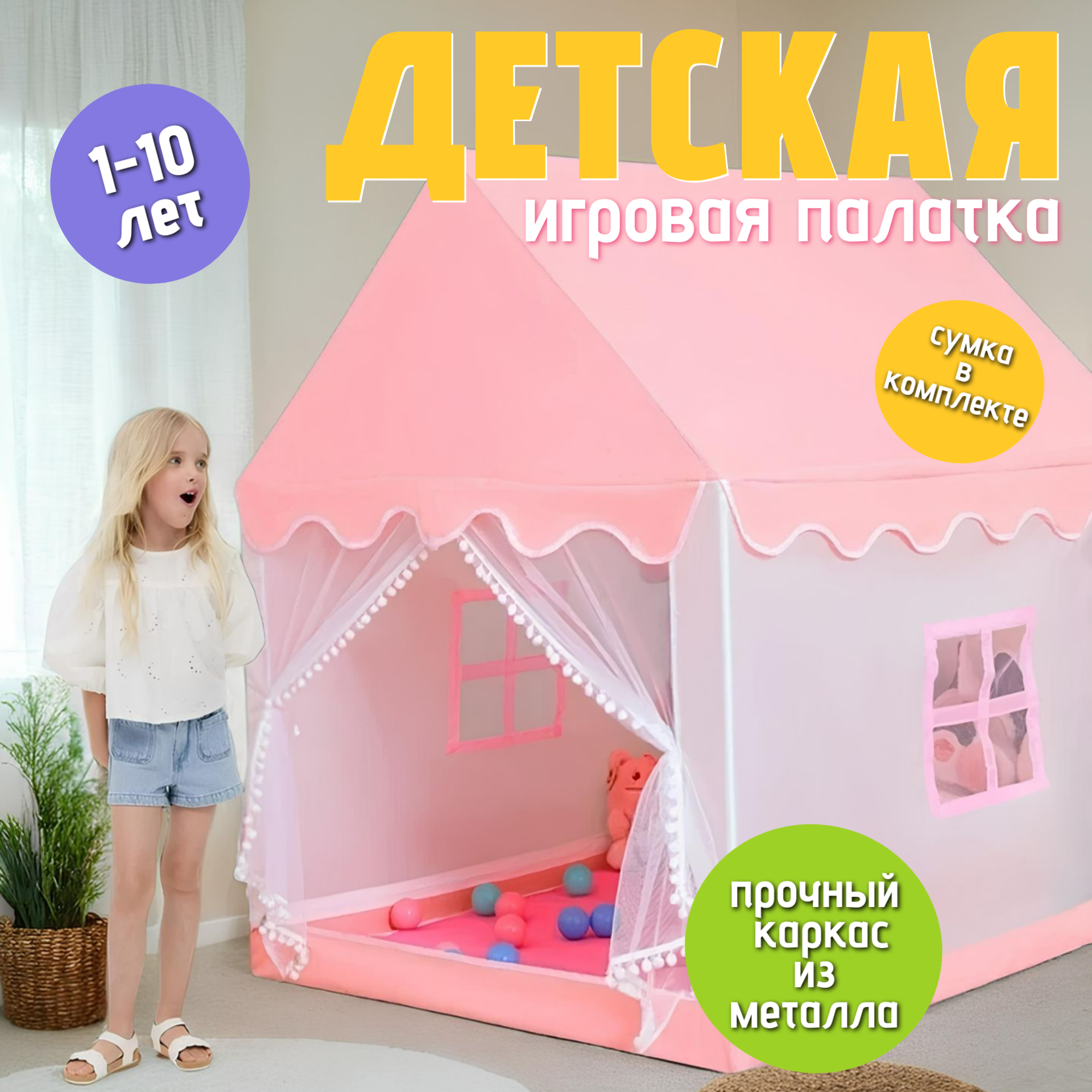 Купить Палатка игровая детская домик большой для девочки металлический каркас с доставкой по всей России. Палатка игровая детская домик большой для девочки металлический каркас: сравнение цен, характеристики, фото, актуальное наличие и цены.