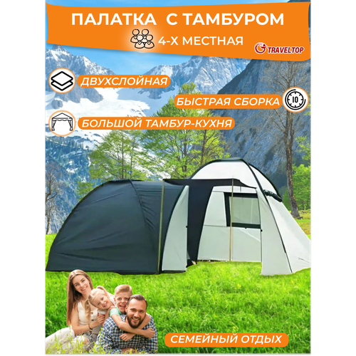 Палатка туристическая 4-х местная с тамбуром двухслойная, Traveltop 2908, 450х240х200: сравнение цен, характеристики, фото, актуальное наличие и цены.