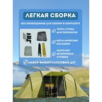 Палатка 4-6 местная с 2 комнатами и тамбуром 1699-1 состоит из 3х отсеков: 2 внутренние спальные палатки (2х-слойные) и тамбур со съемным полом между ними, которыйтакже можно использовать как двухместное спальное место. Тамбур с двумя входами с обеих сторон, также оборудован москитной сеткой. Основной материал палатки - полиэстер со специальным полиуретановым покрытием, которое обеспечивает водонепроницаемость. Полиэстер имеет хорошие показатели прочности, устойчив к истиранию, перепадам температур, что обеспечивает надежную защиту от различных погодных условий. В сложенном состоянии не занимает много места, помещается в специальную сумку-переноску, имеет небольшой вес. Палатка 1699-1 прекрасно подойдёт для рыбалки или туризма совместно с друзьями. Палатка легка в сборке. Все входы - на молниях. Водонепроницаемый тент скроет Вас от дождя (водостойкость тента палатки 3000 мм водяного столба, что равно интенсивному воздействию крупных падающих капель), швы тента проклеены. Москитная сетка защитит от комаров. Штормовые оттяжки удержат палатку при сильном ветре.