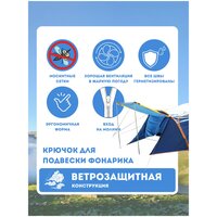 Особенности палатки: Не продуваемый, водонепроницаемый плотный материал Москитная сетка на входе и окнах Имеется навес над входом Все швы палатки надежно проклеены
