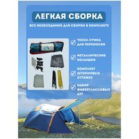В сложенном состоянии занимает минимум места. Двухслойная туристическая палатка подойдёт как для продолжительного похода, так и для рыбалки, отдыха на даче, в саду.