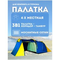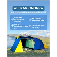 Просторная туристическая палатка LANYU LY-1710 прекрасный выбор для компании из четырех человек. Палатка двухслойная: состоит из внешнего тента и внутренней палатки. Плотный не продуваемый материал. Удобный и надежный механизм сборки/разборки. В комплекте стойки для навеса, ветровые оттяжки, колышки. Все швы надежно проклеены. Палатка в упаковочной сумке с ручками. Технические характеристики Назначение: треккинговая Внутренняя палатка: есть Количество мест: 4 места Тип каркаса: внешний каркас Геометрия: полусфера Размеры внешней палатки (ДхШхВ): 440 х 240 х 170 см Размеры внутренней палатки (ДхШхВ): 220 х 240 х 170 см Количество тамбуров: 1 Количество входов: 1 Количество комнат: 1 Вентиляционные окна: есть Водостойкость тента, мм в. ст: 3000 Водостойкость дна, мм в. ст. : 2000 Герметизация швов: швы проклеенные Противомоскитная сетка: есть противомоскитная сетка на входе Материал тента: 190T Polyester 3000мм Материал дна: 150D Oxford 2000мм Материал внутренней палатки: 180T Polyester дышащая ткань Материал каркаса: каркас из стеклопластика Диаметр основных дуг: 8.5 мм Вес: 9.0 кг