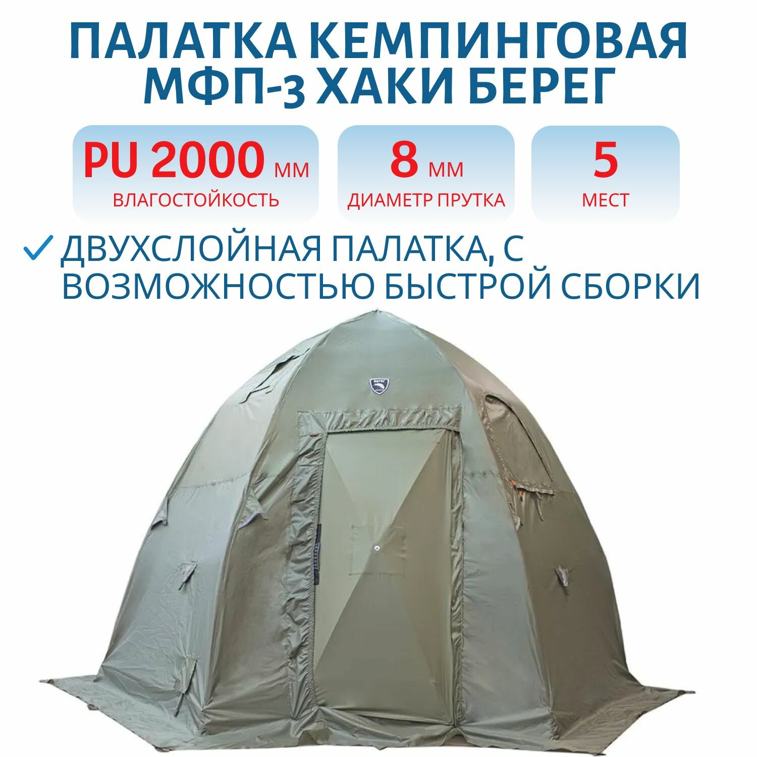 Всесезонная палатка "Берег" МФП-3 - двухслойная палатка, с возможностью быстрой сборки. Палатка МФП-3 предназначенная для рыбалки, охоты и походов в течение всего года. Время установки занимает не более 1 минуты!