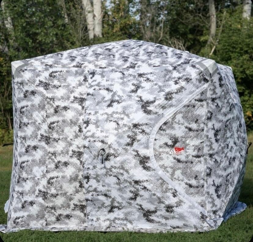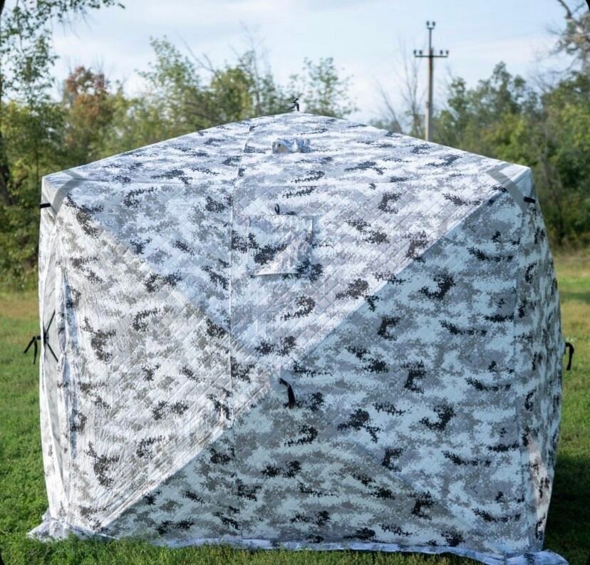 Палатка Куб для зимней рыбалки утепленная трехслойная Размер: 240 x 240 x 230 см Эта удобная и прочная палатка для зимней рыбалки станет вашим надежным спутником на морозе. Я занимаюсь этими палатками давно и уверен в их качестве! Смотрите видеообзор в объявлении для полного понимания конструкции палатки!▎Характеристики:- Материал: Nylon 300D- Дуги: 11 мм fiberglass- 2 входа- 2 съемных прозрачных окна- Окно под дымоход- Приточный клапан- Сумка-чехол для транспортировки- 2 кармана- Крючок для подвешивания фонаря- Ветрозащитная юбка- Стальные хабы- Стеганая конструкция- Ввертыши и ветровые оттяжки в комплекте▎Преимущества:- Палатка собирается и разбирается за считанные минуты, что делает ее идеальной для зимней рыбалки.- Каркас из стеклопластика обеспечивает надежное сохранение кубической формы даже в сильный ветер, предотвращая накопление влаги и снега на крыше.- Прочный, водостойкий и термо-сберегающий материал с широкой по всему периметру снегозащитной юбкой.- Прозрачные окна можно снять или полностью закрыть в зависимости от условий ловли.- При транспортировке палатка складывается в прочную сумку-чехол размером примерно 170х25х25 см