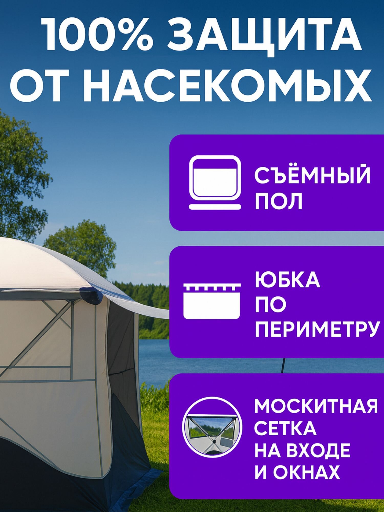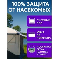 Просторная и надежная палатка для отдыха на природе. Изготовлена из прочного двухслойного материала с водоотталкивающей пропиткой. Пол палатки выполнен из армированного полиэтилена. Он не пропускает влагу и защищает от холода. Имеется тамбур, где можно хранить вещи или готовить еду. Туристическая палатка. Палатка оснащена москитными сетками на окнах и дверях. Все швы проклеены. Входы закрываются на молнии. Окна на липучках. Внутри есть несколько карманов для хранения вещей. Поставляется в комплекте с сумкой для переноски и хранения. Дуги, служащие основой для крепления палатки.