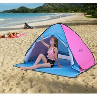 А на пляже многие используют палатку еще и для переодевания. В палатке можно переодеть купальник, скрывшись от посторонних глаз и не ожидая очереди в кабинки для переодевания. Вход в палатку Семейная пляжная палатка XL для отдыха на море, на даче, на природе, на рыбалке. Для детей и взрослых. Цвет розово - голубой.
