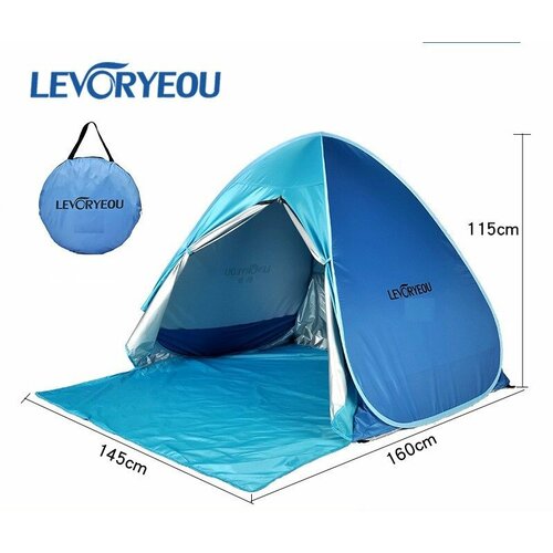 Семейная пляжная палатка для отдыха на море, на даче, на природе, на рыбалке. Для детей и взрослых. Цвет голубой . Она защитит от знойного солнца, ветра и дождя. Вам будет комфортно в палатке и на морском побережье, и на садовом участке, и даже на рыбалке. Надежно защищает от вредных УФ лучей. Специальная ткань с серебряным покрытием по всему периметру, обеспечивает высокую степень защиты от солнца UPF 50+. Палатка изготовлена из водонепроницаемого материала. Палатка хорошо проветривается, благодаря москитной сетке на задней её стенке. В палатке можно вальяжно расположиться маме и папе, и ребенку. Удобно вытянуть ноги и спрятать голову в тень. Палатка настолько вместительная, что в нее помещается 2-3 взрослых человека или 3 - 4 детей. Палатка устойчивая. В комплект входят шесть металлических колышков, с помощью которых вы можете надежно закрепить ее. И тогда палатка укроет вас от ветра и нежданного дождя. А на пляже многие используют палатку еще и для переодевания. В палатке можно переодеть купальник, скрывшись от посторонних глаз и не ожидая очереди в кабинки для переодевания. Вход в палатку закрывается на молнию. Палатка очень легкая. Раскладывается за секунды и устанавливается моментально. Собрать ее тоже легко и быстро, всего за минуту. У палатки есть удобный чехол на молнии. А благодаря длинным ручкам, палатку можно носить на плече как сумку. Прекрасно подходит для защиты от неожиданного дождя, для переодевания на пляже, для сохранности вещей, для детских игр даже дома или квартире , для похода, для рыбалки. Прекрасная альтернатива пляжным зонтам и тентам, которые требуют долгой сборки и неудобны в транспортировке. Летняя палатка занимает мало места, она очень компактная и удобная в эксплуатации. Размеры в установленном положении ДхШхВ - 145х160х115 см. Палатку можно поставить у бассейна на траве в качестве шатра, вигвама, кемпинга или игрового домика для детей. Палатка для любителей активного отдыха, пляжного отдыха и походов с детьми. Этот спорттовар подойдет также в качестве подарка друзьям, близким на день рождения, любой праздник. Комплектация: Палатка - 1 шт, металлические колышки - 6 шт, чехол для колышков - 1 шт, чехол на молнии - 1 шт.