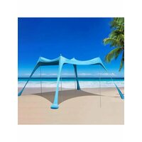 Тент изготовлен из высококачественной эластичной лайкры с УФ-защитным покрытием, блокирующим до 98% вредных ультрафиолетовых лучей. Выдвижная конструкция обеспечивает вентиляцию на 360 градусов и легко собирается без инструментов. Навес устойчив к ветру и солнцу, что делает его идеальным для отдыха на свежем воздухе.