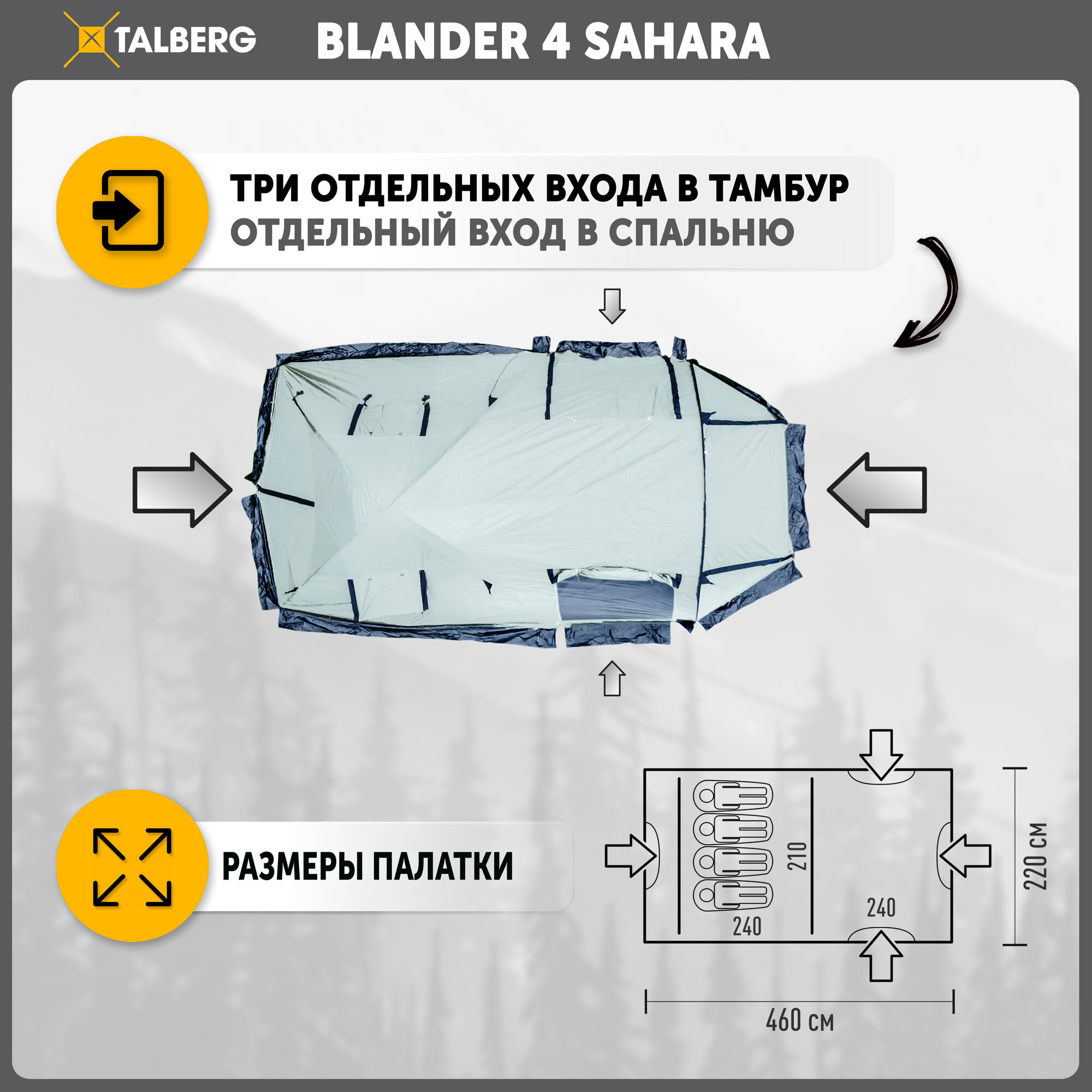 Палатка туристическая кемпинговая Talberg BLANDER 4 SAHARA , серый: сравнение цен, характеристики, фото, актуальное наличие и цены.