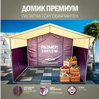 Палатка торговая Митек «Домик Премиум» 3,0х1,9 бежево-коричневая (каркас из трубы Ø 18 мм, проклейка швов + стропа): сравнение цен, характеристики, фото, актуальное наличие и цены.