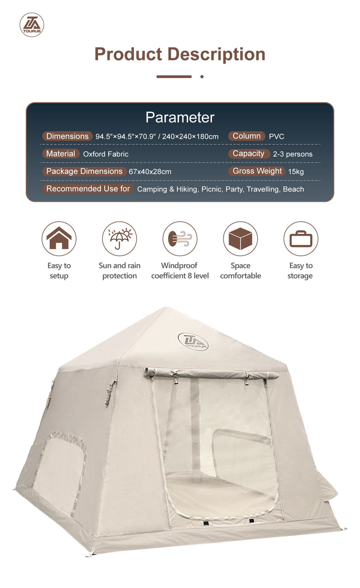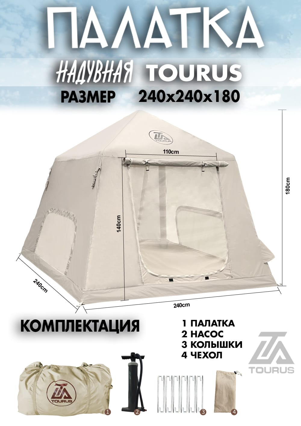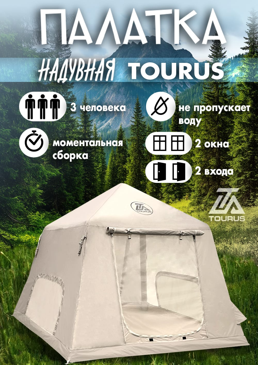 Палатка TOURUS TS-IT01, надувная, 3-местная, 2 слоя, герметичные швы, бежевая: сравнение цен, характеристики, фото, актуальное наличие и цены.