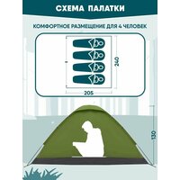 1 комната, вентиляционные отверстия, внутренние карманы, возможность крепления фонарика, окна, проклеенные швы, противомоскитная сетка, штормовые оттяжки