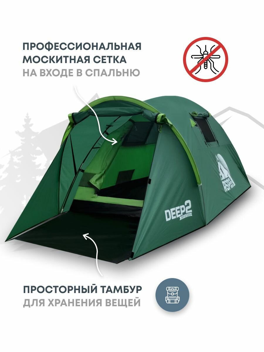 Палатка туристическая 2-х местная RSP Deep 2 (цв. зеленый): сравнение цен, характеристики, фото, актуальное наличие и цены.
