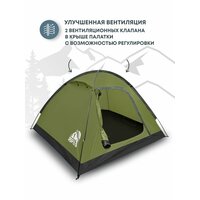 В верхней части палатки расположено трехсекционное вентиляционное окно которое закрывается специальным клапаном для защиты от дождя.