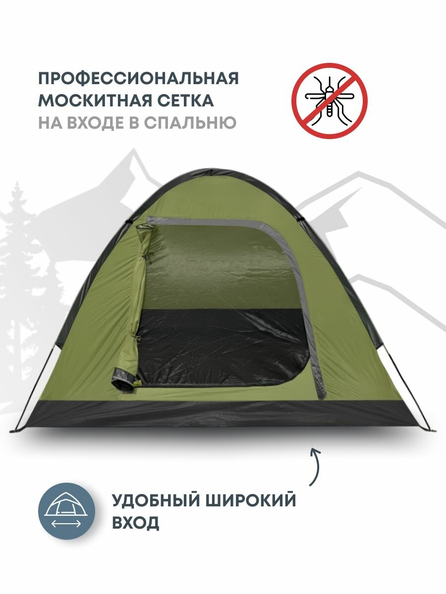 Походные палатки - незаменимое туристическое снаряжение. А маленькая палатка легко поместится в рюкзак, вело-сумку, байдарку и багажник, обеспечивая вам широкий выбор транспорта, направлений и маршрутов для путешествий. Палатки для отдыха 2 мест ные станут отличным решением для путешественников, которые не хотят обременять себя тяжелым рюкзаком и любят часто менять места стоянок. Палатка туристическая водонепроницаемая RSP Kold 2 может использоваться не только, как палатка для отдыха, но и как палатка рыболовная летняя.